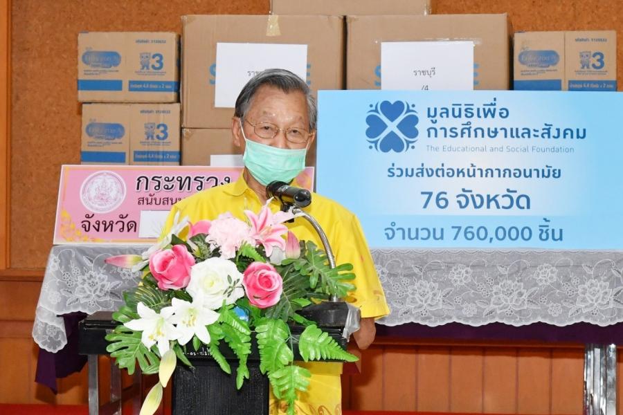 ประธานรัฐสภา ในฐานะประธานมูลนิธิเพื่อสังคมและการศึกษา ลงพื้นที่แจกหน้ากากอนามัยให้ประชาชนที่ขาดแคลนใช้สำหรับป้องกันโควิด-19 เริ่มวันนี้วันแรกที่สมุทรสาคร สมุทรสงคราม ราชบุรี และนครปฐม พร้อมให้กำลังใจเจ้าหน้าที่ผู้ปฏิบัติงาน
