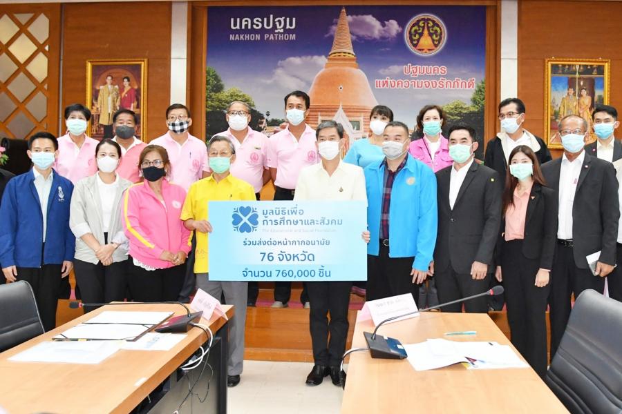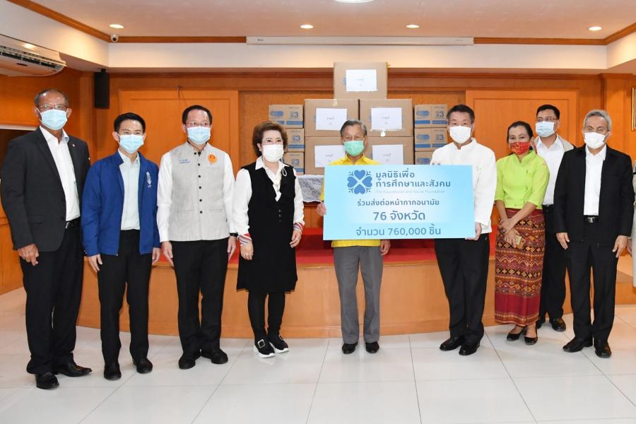 | วันพุธที่ 12 พฤษภาคม 2564 นายชวน หลีกภัย ประธานรัฐสภา ในฐานะประธานมูลนิธิเพื่อสังคมและการศึกษา พร้อมด้วย นายอิสระ เสรีวัฒนวุฒิ สมาชิกสภาผู้แทนราษฎร ในฐานะเลขานุการมูลนิธิฯ น.ส.ศิริภา อินทวิเชียร ผู้ช่วยเลขานุการประธานสภาผู้แทนราษฎร ในฐานะเหรัญญิกมูลนิธิฯ นายสมบูรณ์ อุทัยเวียนกุล เลขานุการประธานสภาผู้แทนราษฎร และน.ส.ผ่องศรี ธาราภูมิ คณะทำงานทางการเมืองของประธานสภาผู้แทนราษฎร เดินทางลงพื้นที่จังหวัดสมุทรสาคร ต่อเนื่องไปยังจังหวัดสมุทรสงคราม ราชบุรี และนครปฐม มอบหน้ากากอนามัยให้กับประชาชนที่ขาดแคลนหน้ากากอนามัย จังหวัดละ 10,000 ชิ้น ผ่านผู้ว่าราชการจังหวัด สำหรับหน้ากากอนามัยที่นำมามอบในวันนี้ ได้รับการสนับสนุนจากสมาคมฮกเกี้ยนแห่งประเทศไทย หนังสือพิมพ์ซิงเสียนเยอะเป้า บริษัท ออโรร่า ซักเซส จำกัด และบริษัท CBS Shoes จำนวน 760,000 ชิ้น มอบผ่านทางมูลนิธิเพื่อสังคมและการศึกษา ตนในฐานะประธานมูลนิธิฯ จึงนำหน้ากากอนามัยที่ได้รับส่งมอบให้กับประชาชนทั้ง 76 จังหวัด ที่ยังขาดแคลนหน้ากากอนามัย จังหวัดละ 10,000 ชิ้น ไว้ใช้สำหรับป้องกันโรคติดเชื้อไวรัสโคโรนา 2019 (โควิด-19)