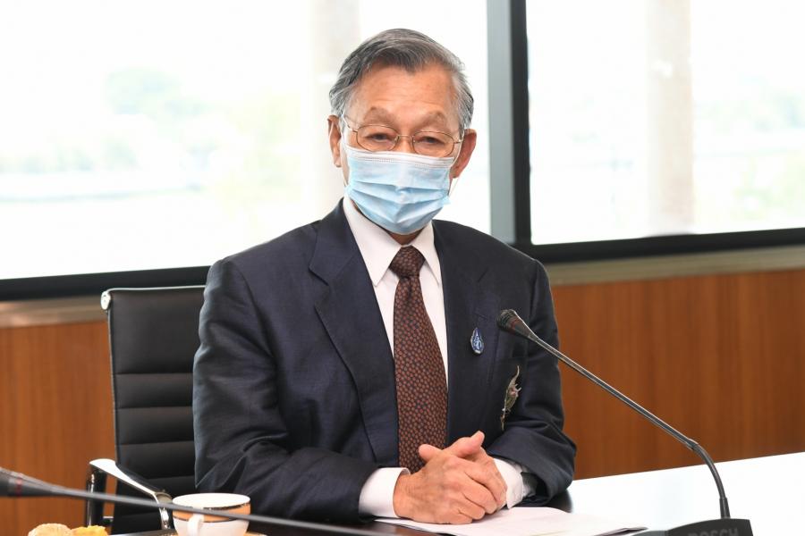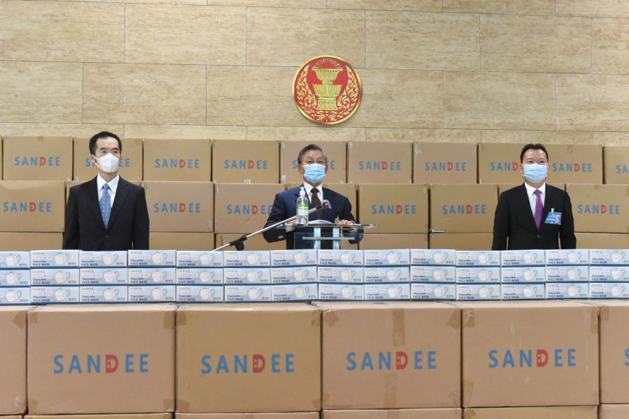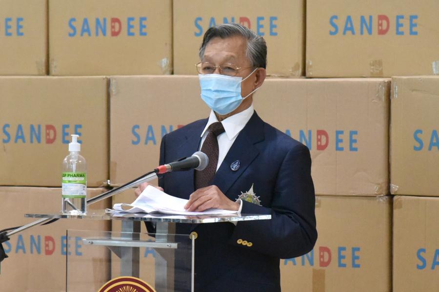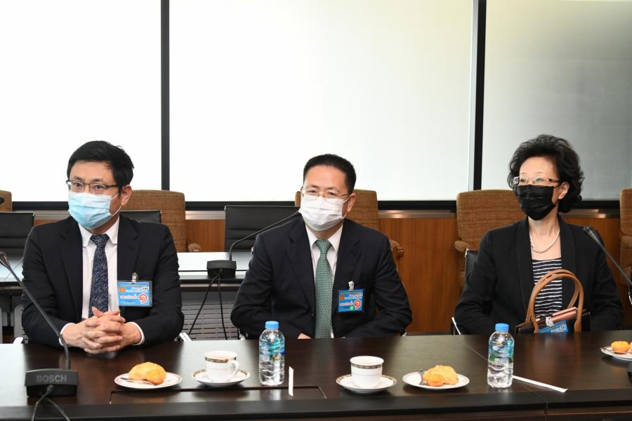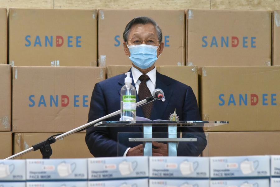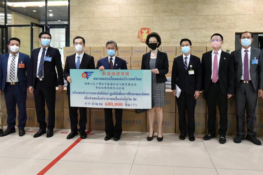 ประธานรัฐสภา ในฐานะประธานมูลนิธิเพื่อสังคมและการศึกษา ให้การต้อนรับ นายสันติ ซอโสตถิกุล นายกสมาคมฮกเกี้ยนแห่งประเทศไทย และนายชาลี ลิ้ม ประธานมูลนิธิเพื่อสัมพันธภาพไทย - จีน และคณะ ในโอกาสที่นำหน้ากากอนามัยมามอบให้กับมูลนิธิเพื่อสังคมและการศึกษา