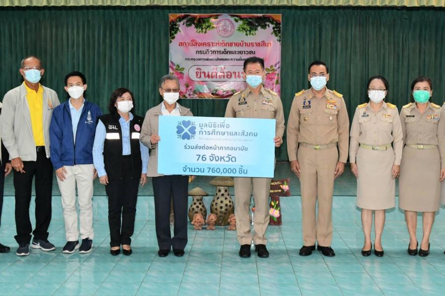 วันเสาร์ที่ 22 พฤษภาคม 2564 เวลา 09.00 นาฬิกา นายชวน หลีกภัย ประธานรัฐสภา ในฐานะประธานมูลนิธิเพื่อสังคมและการศึกษา พร้อมด้วย ดร.อิสระ เสรีวัฒนวุฒิ สมาชิกสภาผู้แทนราษฎร ในฐานะเลขานุการมูลนิธิฯ และนายสมบูรณ์ อุทัยเวียนกุล เลขานุการประธานสภาผู้แทนราษฎร เดินทางไปยังสถานสงเคราะห์เด็กชายบ้านราชสีมา จังหวัดนครราชสีมา เพื่อมอบหน้ากากอนามัย จำนวน 10,000 ชิ้น ให้แก่สำนักงานพัฒนาสังคมและความมั่นคงของมนุษย์จังหวัดนครราชสีมา จัดสรรให้แก่ประชาชนกลุ่มเปราะบางในจังหวัด สำหรับใช้ในการป้องกันการติดเชื้อไวรัสโคโรนา 2019 (โควิด-19) โดยมี นายวิเชียร จันทรโณทัย ผู้ว่าราชการจังหวัดนครราชสีมา เป็นผู้รับมอบ และลงพื้นที่ต่ออีก 4 จังหวัด ได้แก่ บุรีรัมย์ สุรินทร์ ศรีสะเกษ และอุบลราชธานี ตามลำดับ โดยที่จังหวัดบุรีรัมย์ ณ ศาลากลางจังหวัดบุรีรัมย์ ซึ่งมี นายสุทัศน์ เงินหมื่น สมาชิกสภาผู้แทนราษฎร ร่วมมอบ และนายอังกูร ศีลาเทวากูล รองผู้ว่าราชการจังหวัดบุรีรัมย์ เป็นผู้รับมอบ