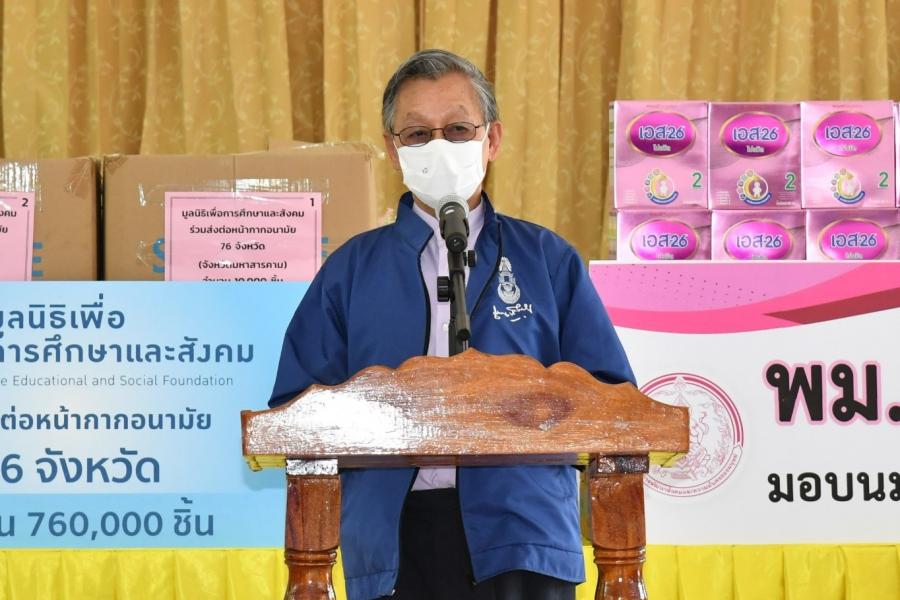 ประธานรัฐสภา ในฐานะประธานมูลนิธิเพื่อสังคมและการศึกษา มอบหน้ากากอนามัยให้ประชาชนในพื้นที่ จ.มหาสารคาม สำหรับใช้ในการป้องกันการติดเชื้อไวรัสโคโรนา 2019 (โควิด-19)