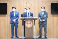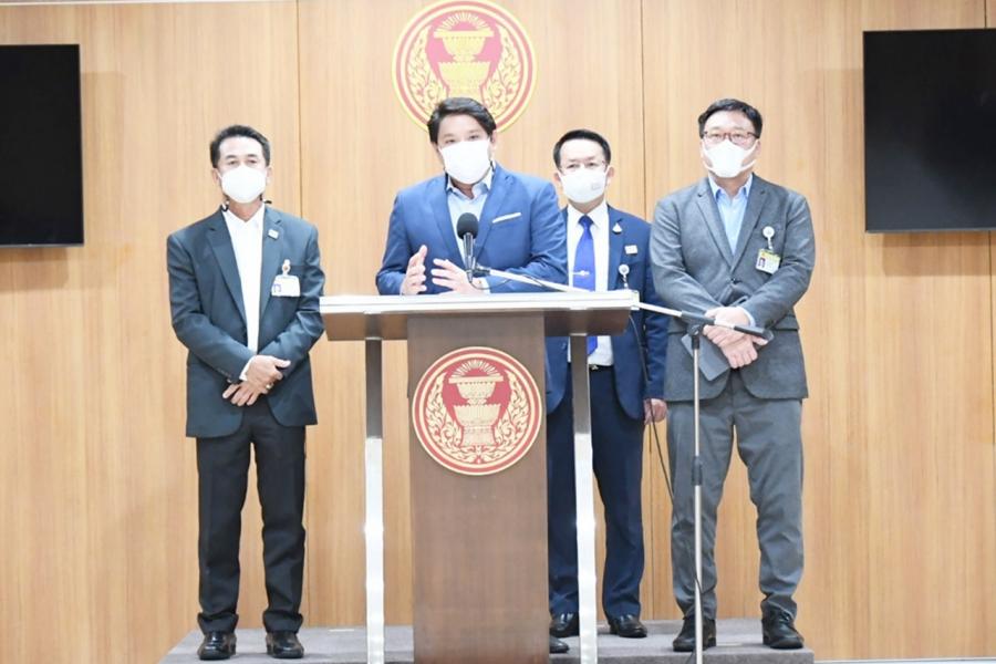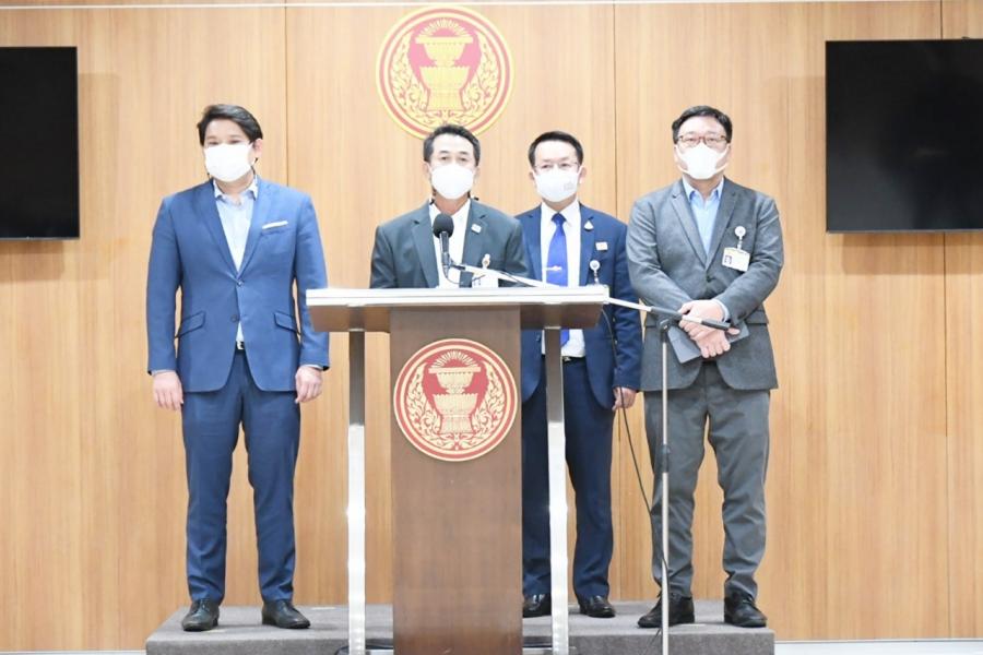 นายชลน่าน ศรีแก้ว ส.ส.พรรคเพื่อไทย พร้อมด้วยตัวแทนพรรคฝ่ายค้าน แถลงข่าวผลการประชุมคณะกรรมการประสานงานร่วมสภาผู้แทนราษฎร