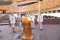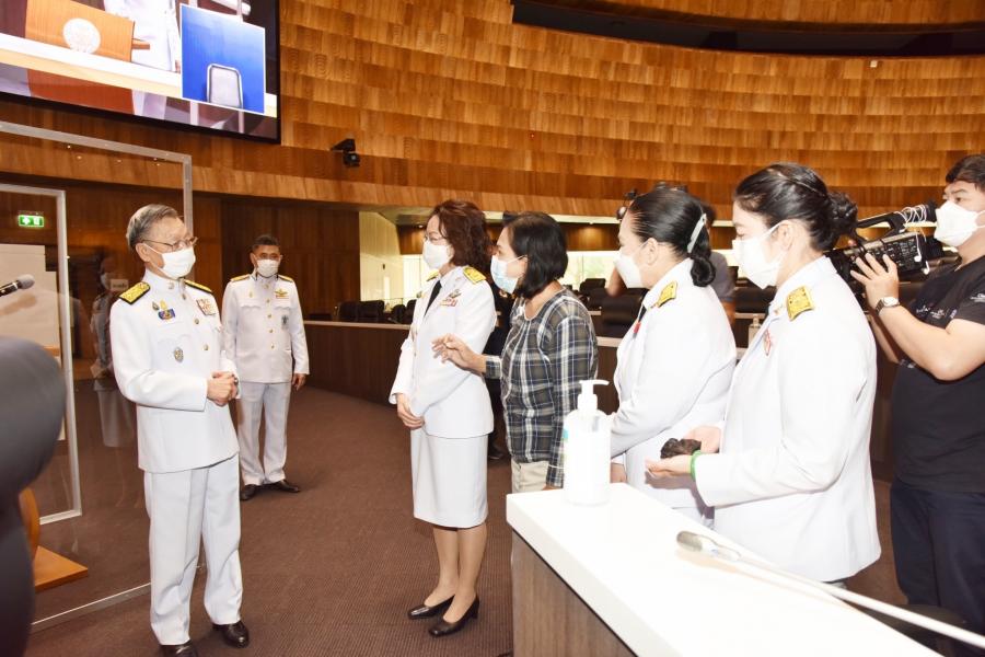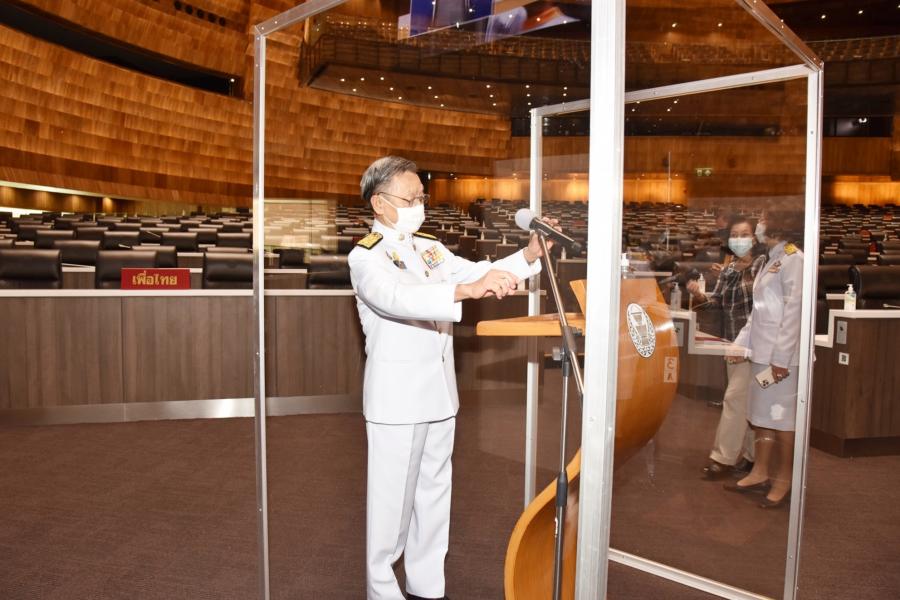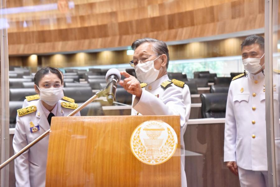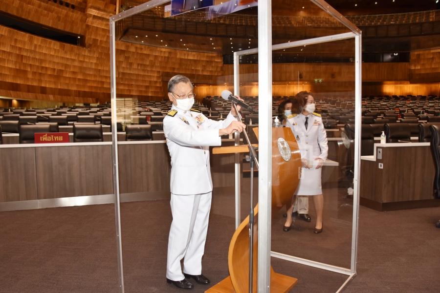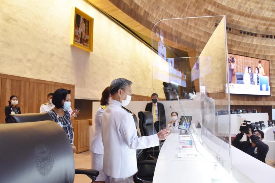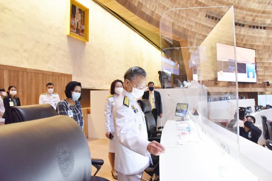 วันอาทิตย์ที่  30 พฤษภาคม 2564 เวลา 09.40 นาฬิกา ณ ห้องประชุมสภาผู้แทนราษฎร ชั้น 2 อาคารรัฐสภา นายชวน หลีกภัย ประธานสภาผู้แทนราษฎร พร้อมด้วยนายพิสิฐ ลี้อาธรรม สมาชิกสภาผู้แทนราษฎร และคณะผู้บริหารสำนักงานเลขาธิการสภาผู้แทนราษฎร ตรวจความเรียบร้อยห้องประชุมสภาผู้แทนราษฎร  อาทิ ที่นั่งประธานฯ ที่นั่งชี้แจงคณะรัฐมนตรี แท่นอภิปรายสมาชิกฯ  เพื่อเตรียมความก่อนการประชุมสภาผู้แทนราษฎรเพื่อพิจารณาร่างพระราชบัญญัติงบประมาณรายจ่ายประจำปีงบประมาณ พ.ศ. 2565 ที่จะมีขึ้นในวันพรุ่งนี้ (31 พ.ค. 64)  โดยจะให้สมาชิกฯ ที่ประสงค์จะถอดหน้ากากอนามัยขณะอภิปราย ต้องอภิปราย ณ แท่นอภิปรายที่จัดให้