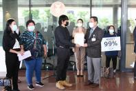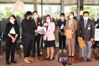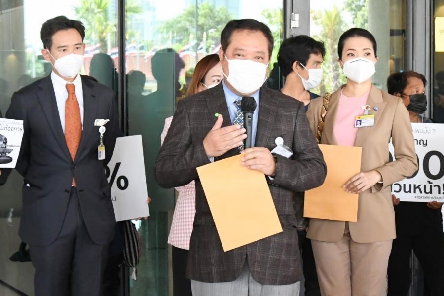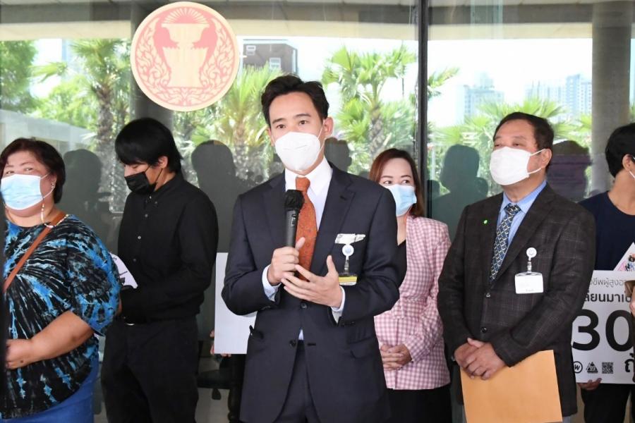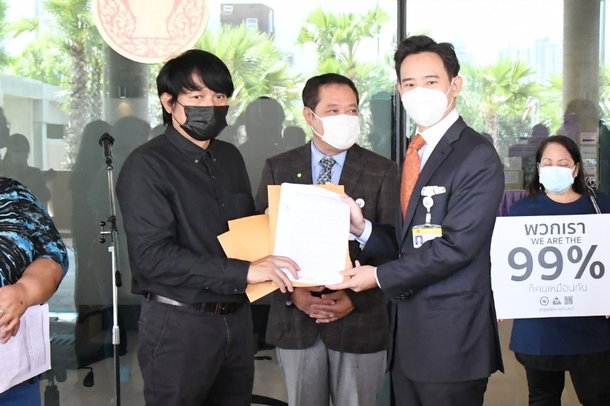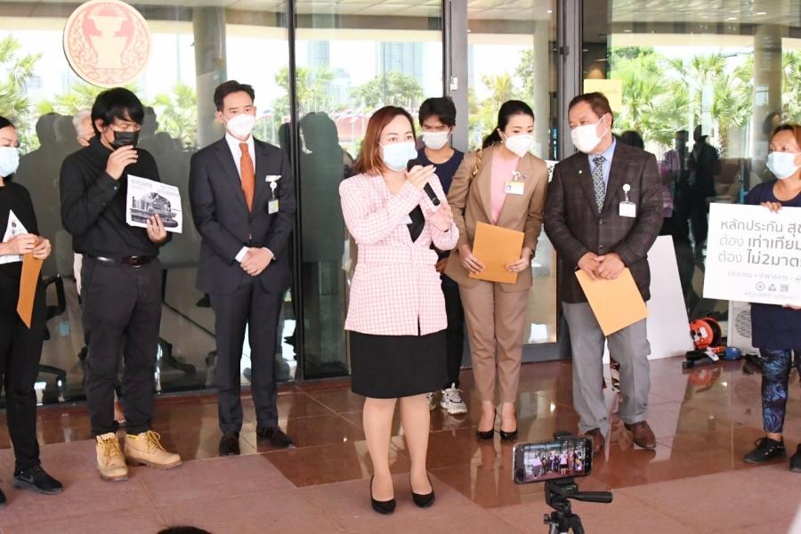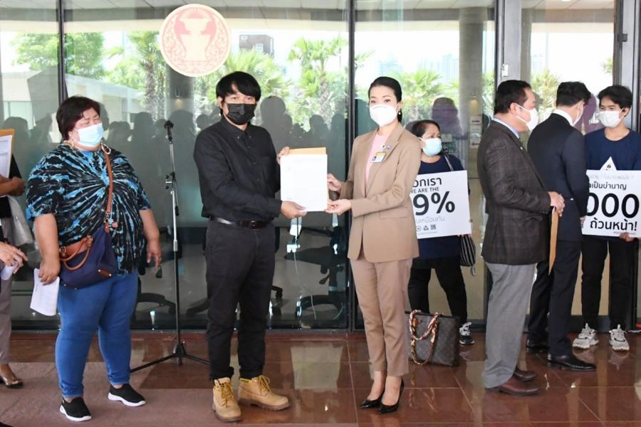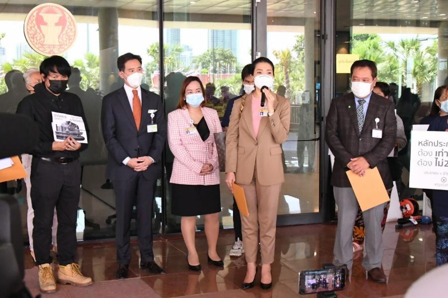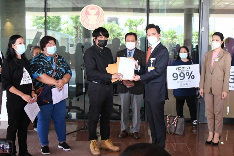 นายพิธา ลิ้มเจริญรัตน์ พร้อมด้วย พ.ต.อ.ทวี สอดส่อง น.ส.ธีรรัตน์ สำเร็จวาณิชย์ และน.ส.วรรณวิภา ไม้สน สมาชิกสภาผู้แทนราษฎร พรรคการเมืองฝ่ายค้าน ในฐานะกมธ.วิสามัญพิจารณาร่าง พ.ร.บ.งบประมาณรายจ่ายประจำปีงบประมาณ พ.ศ. 2565 รับยื่นหนังสือจาก นายนิติรัตน์ ทรัพย์สมบูรณ์ เครือข่ายรัฐสวัสดิการเพื่อความเท่าเทียมและเป็นธรรม (เครือข่าย We Fair) และคณะ