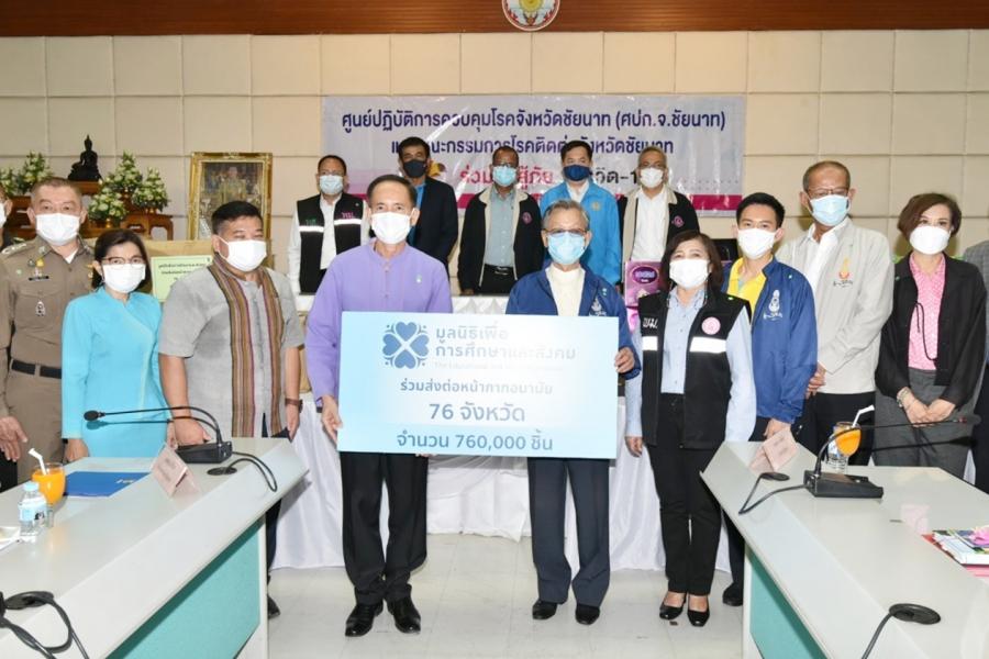 ประธานรัฐสภา ในฐานะประธานมูลนิธิเพื่อสังคมและการศึกษา มอบหน้ากากอนามัยให้ประชาชนในพื้นที่ จ.ชัยนาท สำหรับใช้ในการป้องกันการติดเชื้อไวรัสโคโรนา 2019 (โควิด-19)
