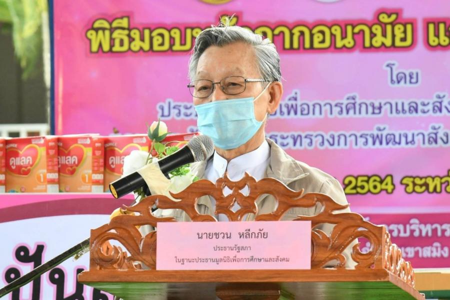 วันเสาร์ที่ 19 มิถุนายน 2564 เวลา 12.10 นาฬิกา นายชวน หลีกภัย ประธานรัฐสภา ในฐานะประธานมูลนิธิเพื่อสังคมและการศึกษา พร้อมด้วย นายอิสระ เสรีวัฒนวุฒิ สมาชิกสภาผู้แทนราษฎร ในฐานะเลขานุการมูลนิธิฯ และน.ส.ศิริภา อินทวิเชียร ผู้ช่วยเลขานุการประธานสภาผู้แทนราษฎร ในฐานะเหรัญญิกมูลนิธิฯ เดินทางไปมอบหน้ากากอนามัย จำนวน 10,000 ชิ้น หน้ากากอนามัยสำหรับเด็ก จำนวน 2,000 ชิ้น และนมผงสำหรับเด็ก ณ ด่านตรวจท่าจอดจังหวัดตราด ผ่านผู้ว่าราชการจังหวัดและสำนักงานพัฒนาสังคมและความมั่นคงของมนุษย์จังหวัดตราด เพื่อนำไปจัดสรรให้แก่ประชาชนกลุ่มเปราะบางในจังหวัด สำหรับใช้ป้องกันโรคติดเชื้อไวรัสโคโรนา 2019 (โควิด-19) โดยมี นายธีระ สลักเพชร อดีตรัฐมนตรีว่าการกระทรวงวัฒนธรรม และอดีตสมาชิกสภาผู้แทนราษฎร ร่วมให้การต้อนรับ และร่วมมอบ ซึ่งนายภิญโญ ประกอบผล ผู้ว่าราชการจังหวัดตราด เป็นผู้รับมอบ