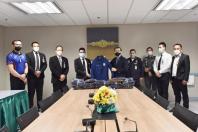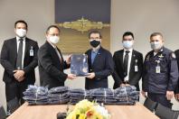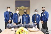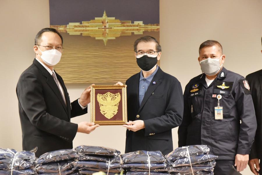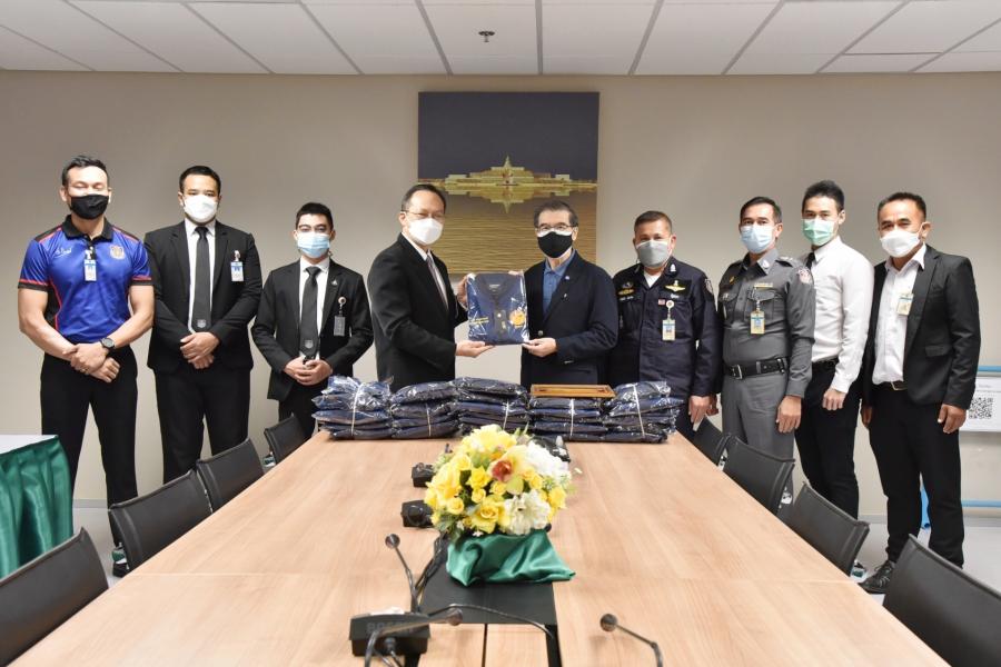 นายพรชัย ตระกูลวรานนท์ ส.ส.พรรคพลังประชารัฐ มอบเสื้อแจ็คเก็ตลำลองสีน้ำเงิน ให้กับ ผู้อำนวยการสำนักรักษาความปลอดภัย