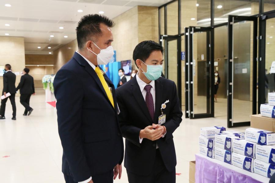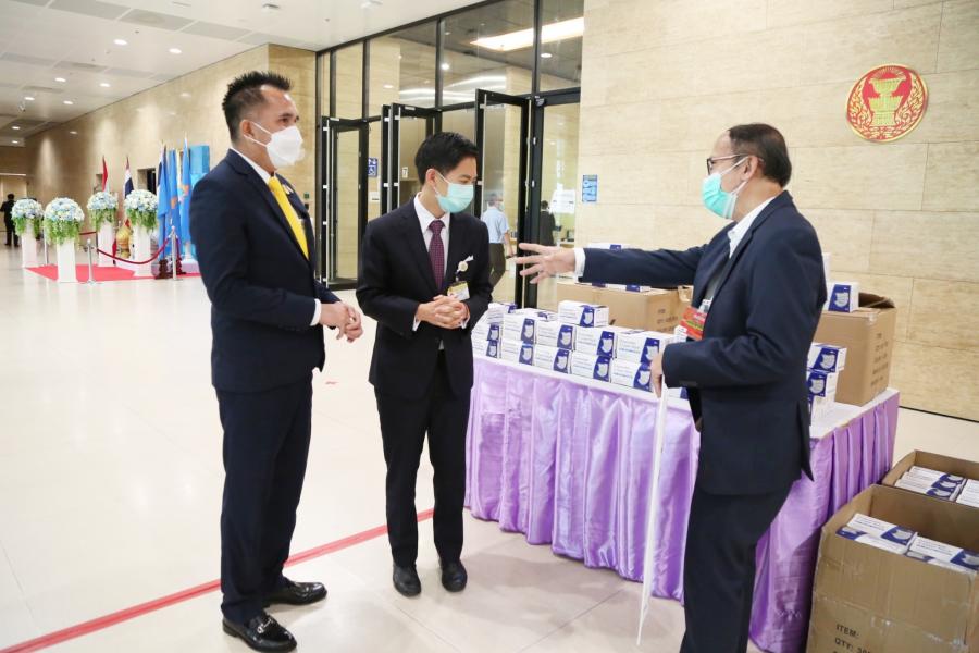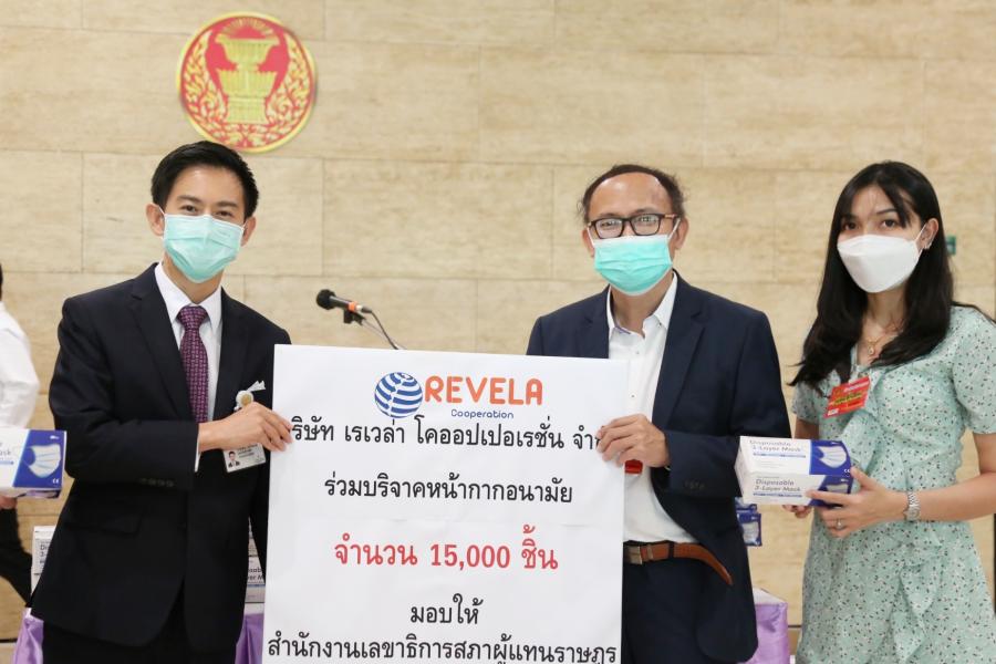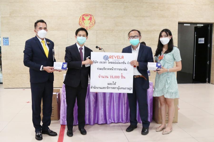 นายอิสระ เสรีวัฒนวุฒิ สมาชิกสภาผู้แทนราษฎร พรรคประชาธิปัตย์ รับมอบหน้ากากอนามัย จำนวน 15,000 ชิ้น จาก ที่ปรึกษาบริษัท โรเวล่า โคออปเปอเรชั่น จำกัด
