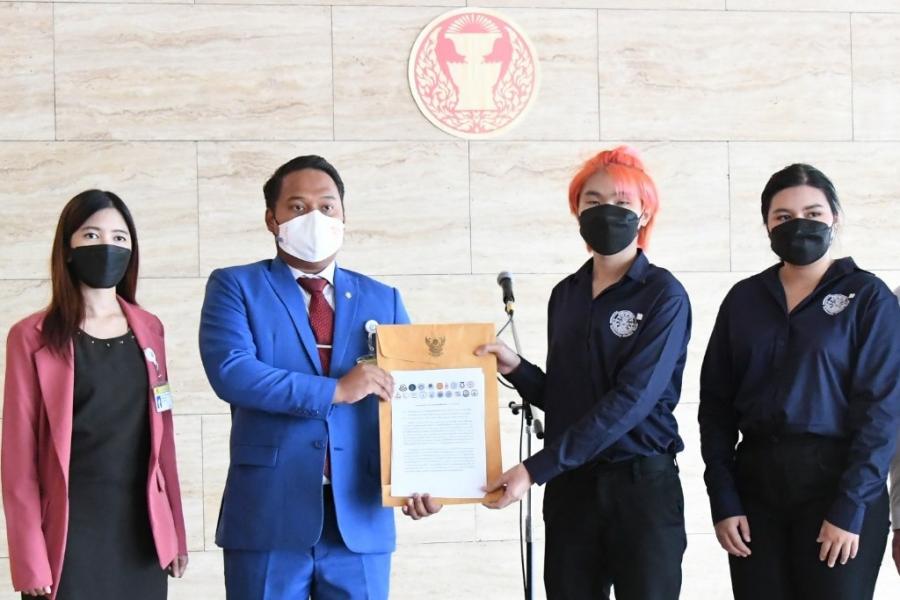 ประธานคณะ กมธ. การพัฒนาการเมือง การสื่อสารมวลชน และการมีส่วนร่วมของประชาชน รับยื่นหนังสือจาก โฆษกองค์กรนักศึกษามหาวิทยาลัยธรรมศาสตร์ ตัวแทนองค์การและสโมสรนิสิตนักศึกษา 19 มหาวิทยาลัย และคณะ เพื่อขอให้สภาผู้แทนราษฎร ปกป้องสิทธิและคุ้มครองประชาชนจากการกระทำความรุนแรงของเจ้าหน้าที่รัฐ