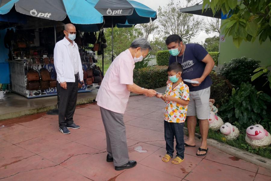 ประธานรัฐสภา และประธานมูลนิธิเพื่อสังคมและการศึกษา มอบหน้ากากอนามัยให้กับประชาชนบริเวณสถานีบริการน้ำมันเชื้อเพลิง ในระหว่างเดินทางลงพื้นที่ 10 จังหวัด ภาคเหนือตอนบน