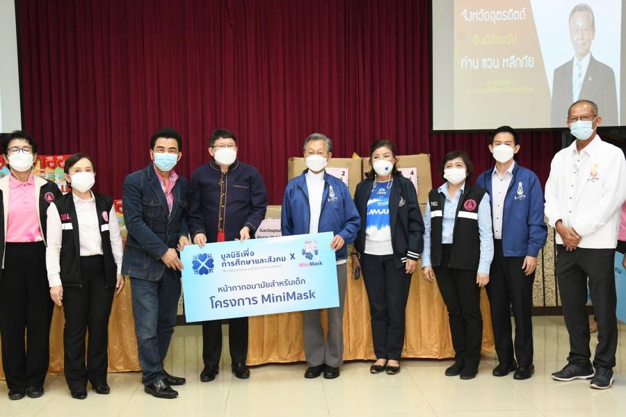 สำหรับหน้ากากอนามัยที่นำมามอบในครั้งนี้ ได้รับการสนับสนุนจากสมาคมฮกเกี้ยนแห่งประเทศไทย มูลนิธิเพื่อสัมพันธภาพไทยจีน หนังสือพิมพ์ซิงเสียนเยอะเป้า บริษัท ออโรร่า ซักเซส จำกัด บริษัท CBS Shoes บริษัท ไทยซิง สตีล จำกัด และบริษัท หยงชิง สตีล (ไทยแลนด์) จำกัด ที่มอบผ่านทางมูลนิธิเพื่อสังคมและการศึกษา ส่วนหน้ากากอนามัยสำหรับเด็ก ได้รับการสนับสนุนจาก นายเทวัญ ลิปตพัลลภ นายสุภดิช อากาศฤกษ์ สมาชิกสภาผู้แทนราษฎร ดร.ชัยรัตน์ จำนงค์การ พร้อมด้วยคณะนักศึกษาประกาศนียบัตรชั้นสูงการเมืองการปกครองในระบอบประชาธิปไตยสำหรับนักบริหารระดับสูง (ปปร.) รุ่นที่ 24 สมาคมฮกเกี้ยน แห่งประเทศไทย บริษัท บาโอจิ จำกัด บริษัทเซียน หัว ไท้ จำกัด นายใช่ เซี่ยว ซิง สมาคมการค้าฟูเจี้ยนอาน บริษัท จิ่ว หลง ไทย นายโหลว เจี้ยน หยฟู่ นายจักร สื่อมโนธรรม บริษัท จุไทย กรุ๊ป จำกัด และบริษัท จริงใจเสมอ ผ่าน "โครงการ MiniMask หน้ากากเพื่อเด็ก"