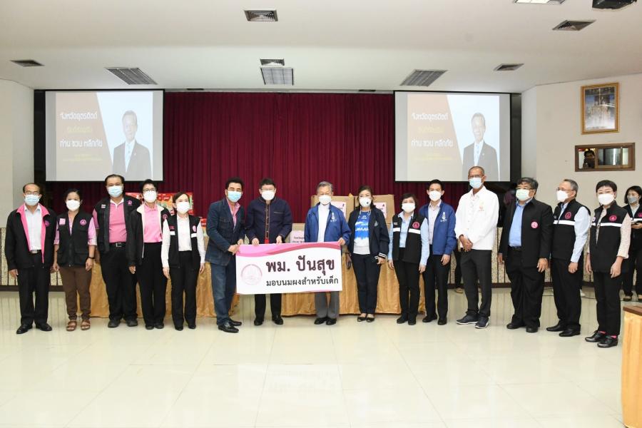 | วันศุกร์ที่ 24 กันยายน 2564 เวลา 11.00 นาฬิกา ณ ศาลากลาง จ.อุตรดิตถ์ นายชวน หลีกภัย ประธานรัฐสภา และประธานมูลนิธิเพื่อสังคมและการศึกษา พร้อมด้วย นายอิสระ เสรีวัฒนวุฒิ สมาชิกสภาผู้แทนราษฎร ในฐานะเลขานุการมูลนิธิฯ นางศิริวรรณ ปราศจากศัตรู สมาชิกสภาผู้แทนราษฎร นางพัชรี อาระยะกุล ปลัดกระทรวงการพัฒนาสังคมและความมั่นคงของมนุษย์ นายสมบูรณ์ อุทัยเวียนกุล เลขานุการประธานสภาผู้แทนราษฎร และคณะผู้บริหารกระทรวงการพัฒนาสังคมและความมั่นคงของมนุษย์ เดินทางลงพื้นที่ 10 จังหวัด ในภาคเหนือตอนบน โดยเริ่มจาก จ.อุตรดิตถ์ ต่อเนื่องไปยัง จ.แพร่ จ.น่าน จ.พะเยา จ.เชียงราย จ.เชียงใหม่ จ.แม่ฮ่องสอน จ.ลำพูน จ.ลำปาง และ จ.ตาก เพื่อพบปะส่วนราชการ และ พี่น้องประชาชน พร้อมทั้งให้กำลังใจและรับทราบข้อมูลเกี่ยวกับสถานการณ์การแพร่ระบาดของเชื้อไวรัสโคโรนา 2019 (โควิด-19) โดยได้มอบหน้ากากอนามัย จำนวน 10,000 ชิ้น หน้ากากอนามัยสำหรับเด็ก จำนวน 2,000 ชิ้น และนมผงสำหรับเด็กให้แก่พี่น้องประชาชนกลุ่มเปราะบาง ในการนี้ นายศรัณย์วุฒิ ศรัณย์เกตุ สมาชิกสภาผู้แทนราษฎร จังหวัดอุตรดิตถ์ ได้ร่วมมอบปลากระป๋อง จำนวน 500 กระป๋อง บะหมี่กึ่งสำเร็จรูป จำนวน 1,442 ซอง น้ำดื่มผสมวิตามิน จำนวน 480 ขวด และพัดลม จำนวน 20 ตัว โดยมี นายสหวิช อภิชัยวิศรุตกุล รองผู้ว่าราชการจังหวัดอุตรดิตถ์ และสำนักงานพัฒนาสังคมและความมั่นคงของมนุษย์จังหวัดอุตรดิตถ์ เป็นผู้รับมอบ