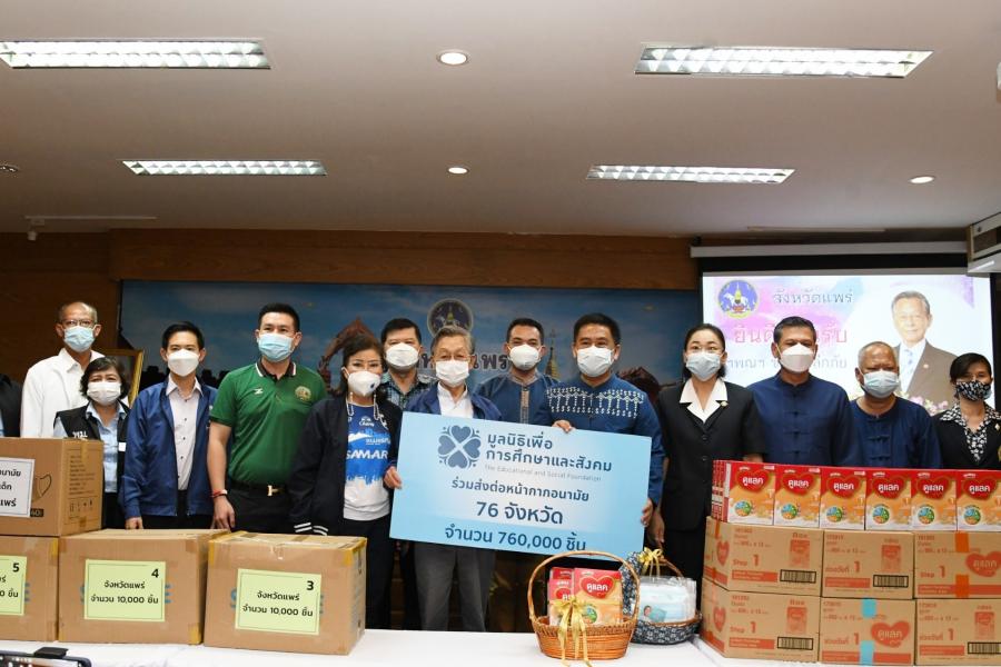 ประธานรัฐสภา และประธานมูลนิธิเพื่อสังคมและการศึกษา มอบหน้ากากอนามัยให้ประชาชนในพื้นที่ จ.แพร่ สำหรับใช้ป้องกันโควิด-19