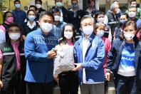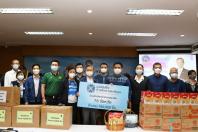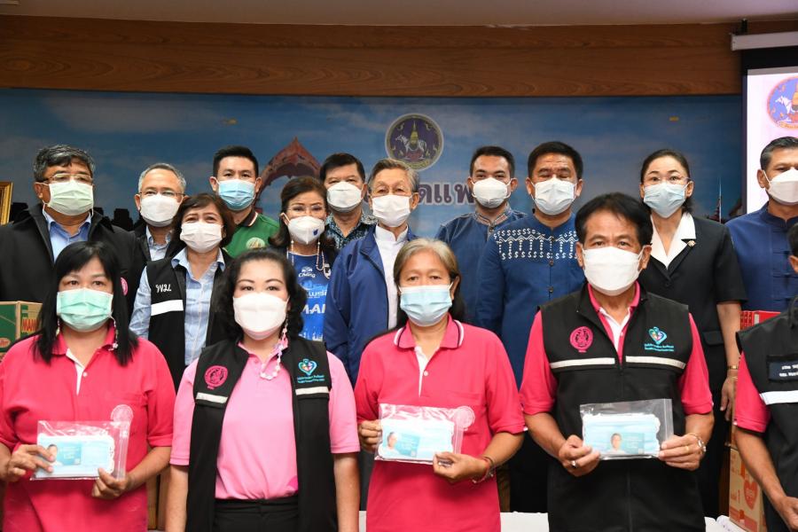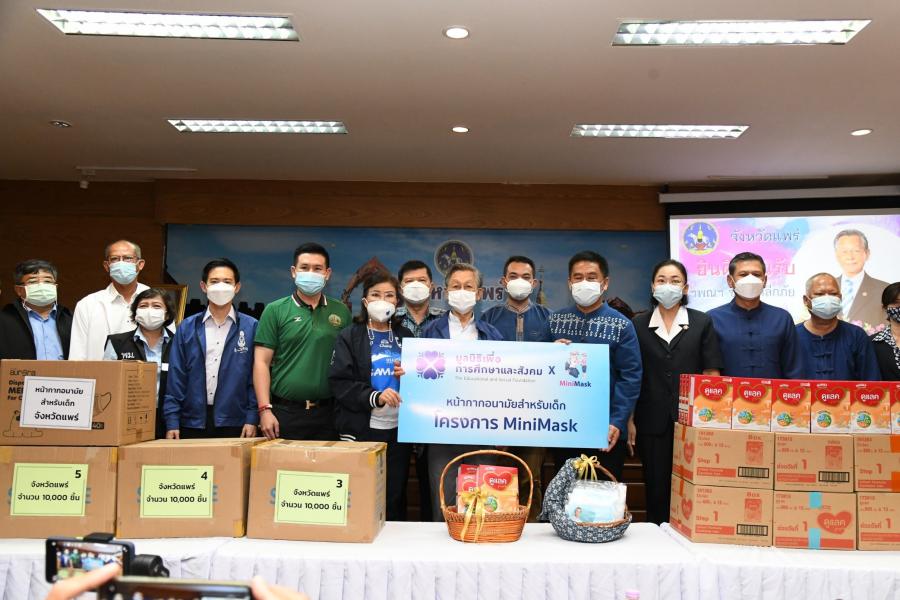 สำหรับหน้ากากอนามัยที่นำมามอบในครั้งนี้ ได้รับการสนับสนุนจากสมาคมฮกเกี้ยนแห่งประเทศไทย มูลนิธิเพื่อสัมพันธภาพไทยจีน หนังสือพิมพ์ซิงเสียนเยอะเป้า บริษัท ออโรร่า ซักเซส จำกัด บริษัท CBS Shoes บริษัท ไทยซิง สตีล จำกัด และบริษัท หยงชิง สตีล (ไทยแลนด์) จำกัด ที่มอบผ่านทางมูลนิธิเพื่อสังคมและการศึกษา ส่วนหน้ากากอนามัยสำหรับเด็ก ได้รับการสนับสนุนจาก นายเทวัญ ลิปตพัลลภ นายสุภดิช อากาศฤกษ์ สมาชิกสภาผู้แทนราษฎร ดร.ชัยรัตน์ จำนงค์การ พร้อมด้วยคณะนักศึกษาประกาศนียบัตรชั้นสูงการเมืองการปกครองในระบอบประชาธิปไตยสำหรับนักบริหารระดับสูง (ปปร.) รุ่นที่ 24 สมาคมฮกเกี้ยน แห่งประเทศไทย บริษัท บาโอจิ จำกัด บริษัทเซียน หัว ไท้ จำกัด นายใช่ เซี่ยว ซิง สมาคมการค้าฟูเจี้ยนอาน บริษัท จิ่ว หลง ไทย นายโหลว เจี้ยน หยฟู่ นายจักร สื่อมโนธรรม บริษัท จุไทย กรุ๊ป จำกัด และบริษัท จริงใจเสมอ ผ่าน "โครงการ MiniMask หน้ากากเพื่อเด็ก"