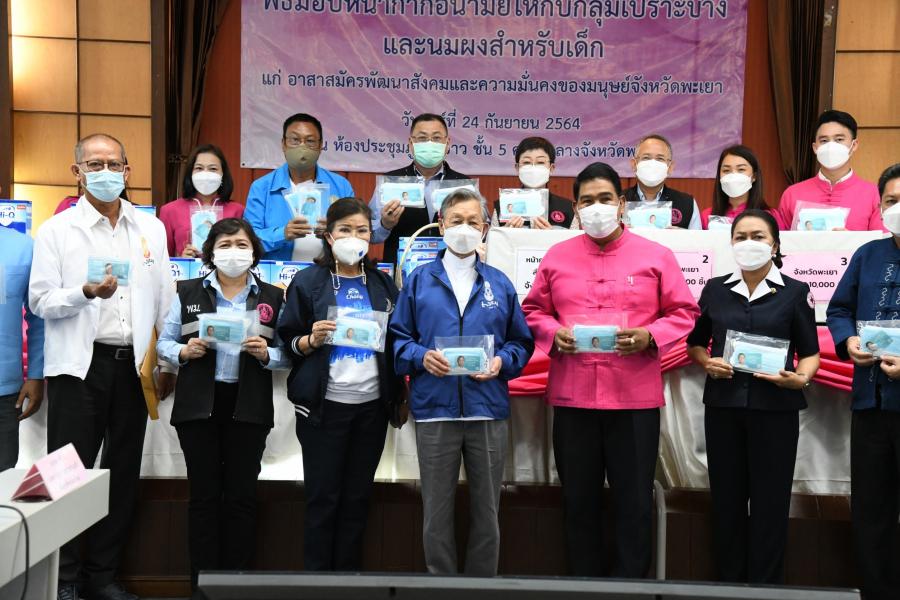ประธานรัฐสภา และประธานมูลนิธิเพื่อสังคมและการศึกษา มอบหน้ากากอนามัยให้ประชาชนในพื้นที่ จ.พะเยา สำหรับใช้ป้องกันโควิด-19