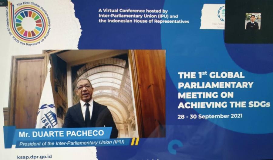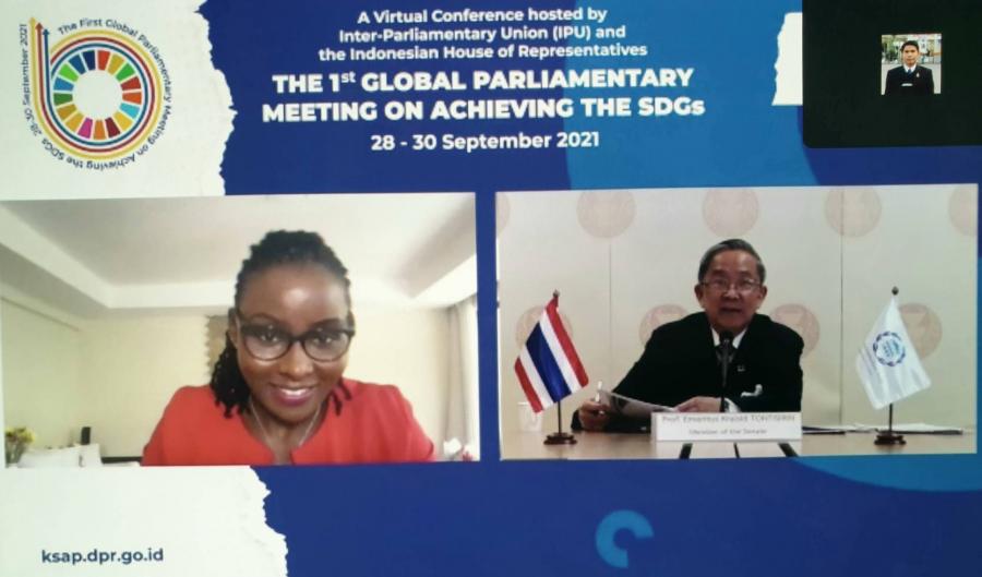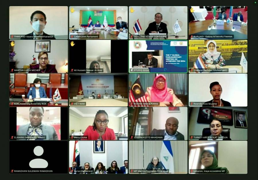 เมื่อวันที่ 28 กันยายน 2564 เวลา 15.00 18.00 นาฬิกา คณะผู้แทนรัฐสภาไทย ประกอบด้วย นายอิสระ เสรีวัฒนวุฒิ และ น.ส.สรัสนันท์ อรรณนพพร สมาชิกสภาผู้แทนราษฎร นางพิกุลแก้ว ไกรฤกษ์ และ ศ.เกียรติคุณไกรสิทธิ์ ตันติศิรินทร์ สมาชิกวุฒิสภา เข้าร่วมการประชุมระดับโลกของภาครัฐสภาว่าด้วยการบรรลุเป้าหมายการพัฒนาที่ยั่งยืน ครั้งที่ 1 (First Global Parliamentary Meeting on Achieving the SDGs) ผ่านสื่ออิเล็กทรอนิกส์เป็นวันแรก ซึ่งการประชุมดังกล่าวจัดขึ้นโดยความร่วมมือระหว่างสหภาพรัฐสภา (IPU) และสภาผู้แทนราษฎรสาธารณรัฐอินโดนีเซีย ระหว่างวันที่ 28 - 30 ก.ย. 64 โดยมีวัตถุประสงค์เพื่อเสริมสร้างความเข้มแข็งของภาครัฐสภาในการติดตามและขับเคลื่อนวาระการพัฒนาที่ยั่งยืนให้บรรลุเป้าหมายภายในปี ค.ศ. 2030 โดยมีผู้เข้าร่วมประชุมจากรัฐสภาประเทศสมาชิกจำนวนกว่า 134 คน ในการนี้ น.ส.เพชรดาว โต๊ะมีนา สมาชิกสภาผู้แทนราษฎร ในฐานะสมาชิกคณะที่ปรึกษาด้านสาธารณสุขของสหภาพรัฐสภา ได้เข้าร่วมการประชุมตามคำเชิญของ IPU ด้วย