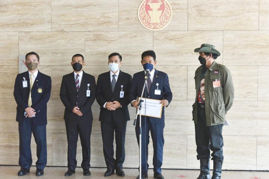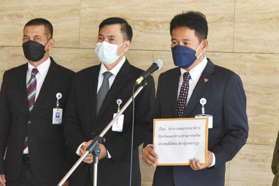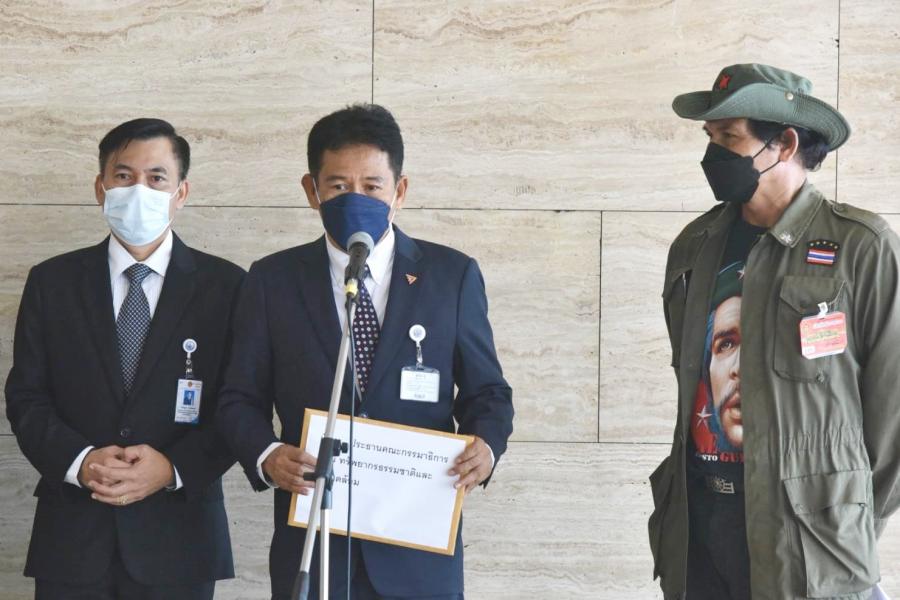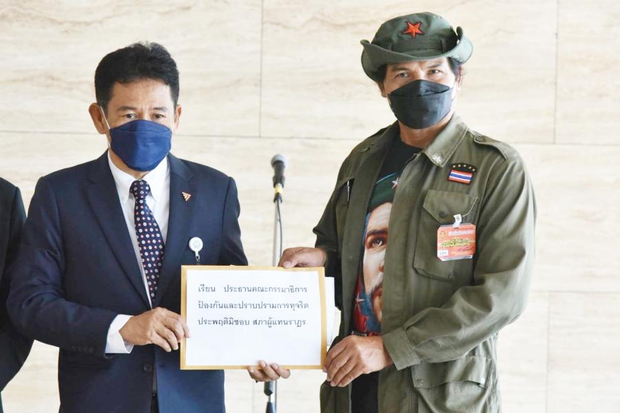 นายธีรัจชัย พันธุมาศ ส.ส.พรรคก้าวไกล รับยื่นหนังสือจาก นายจอมพล รุ่งเรือง ชูเลิศ ประธานคณะกรรมการปราบปรามโกงชาติ