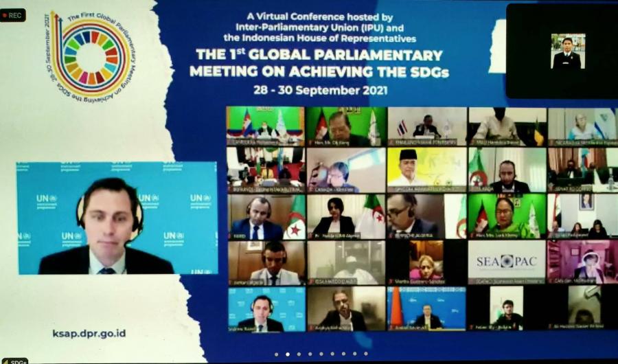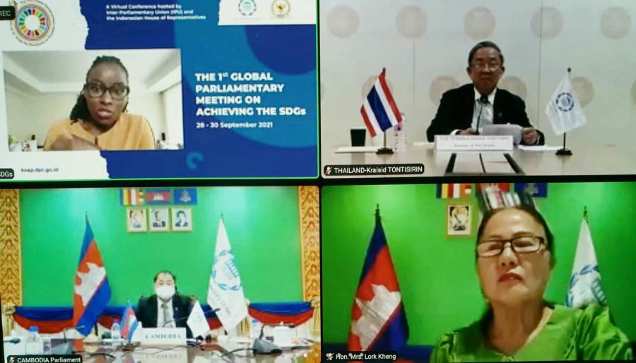 เมื่อวันที่ 29 กันยายน 2564 เวลา 18.00 20.30 นาฬิกา คณะผู้แทนรัฐสภาไทย ประกอบด้วย นายอิสระ เสรีวัฒนวุฒิ และ น.ส.สรัสนันท์ อรรณนพพร สมาชิกสภาผู้แทนราษฎร พร้อมด้วยนางพิกุลแก้ว ไกรฤกษ์ และ ศ.เกียรติคุณไกรสิทธิ์ ตันติศิรินทร์ สมาชิกวุฒิสภา เข้าร่วมการประชุมระดับโลกของภาครัฐสภาว่าด้วยการบรรลุเป้าหมายการพัฒนาที่ยั่งยืน ครั้งที่ 1 (First Global Parliamentary Meeting on Achieving the SDGs) ผ่านสื่ออิเล็กทรอนิกส์ จัดโดยสหภาพรัฐสภาร่วมกับรัฐสภาอินโดนีเซีย เป็นวันที่สอง โดยดำเนินการประชุมตามวาระต่อเนื่องจากการประชุมวันแรก และแบ่งการอภิปรายออกเป็น 3 ช่วง ดังนี้ การประชุมช่วงที่ 4 ภายใต้หัวข้อ การเปลี่ยนแปลงสภาพภูมิอากาศคือความจริงและรุนแรงขึ้น : เราจะทำอะไรเพื่อแก้ปัญหานี้ (Climate change is real and its intensifying: What are we doing about it?) เริ่มต้นขึ้นโดยการนำเสนอของ Ms. Maisa Rojas ผู้อำนวยการศูนย์สภาพภูมิอากาศและการฟื้นฟู มหาวิทยาลัยชิลี และผู้ประสานงานการจัดทำรายงานการประเมินสถานการณ์ด้านการเปลี่ยนแปลงสภาพภูมิอากาศ (คณะทำงานกลุ่มที่ 1) ในการประชุมคณะกรรมการระหว่างรัฐบาลว่าด้วยการเปลี่ยนแปลงสภาพภูมิอากาศ ครั้งที่ 6 (The 6th Assessment Report of the Intergovernmental Panel on Climate Change :IPCC) ซึ่งได้กล่าวถึงผลการวิจัยสภาพภูมิอากาศในช่วง 50 ปี ที่ผ่านมา พบว่า วิกฤตโลกร้อนมีอุณหภูมิสูงขึ้นมากกว่า 1.5 องศาเซลเซียส อันก่อให้เกิดการละลายของน้ำแข็งบนเปลือกโลก ระดับน้ำในมหาสมุทรเพิ่มสูงขึ้น และการลดลงของปริมาณออกซิเจนในมหาสมุทร ซึ่งส่งผลกระทบต่อการมีอยู่ของสัตว์โลกใต้ทะเล และปัจจัยต่าง ๆ เหล่านี้ก่อให้เกิดผลกระทบต่อมวลมนุษยชาติในทุกทิศทาง โดยเฉพาะอย่างยิ่งการประสบกับปัญหาภัยพิบัติขนาดใหญ่ รุนแรง และมีความถี่มากขึ้นกว่าเดิมในช่วง 100 ปีที่ผ่านมา ทั้งนี้ รายละเอียดของการวิจัยในรายงานการประเมินสถานการณ์ด้านการเปลี่ยนแปลงสภาพภูมิอากาศดังกล่าวจะถูกนำเสนอต่อที่ประชุมสหประชาชาติว่าด้วยการเปลี่ยนแปลงสภาพภูมิอากาศ ครั้งที่ 26 (COP26) ซึ่งจะจัดขึ้นในช่วงเดือนต.ค. ถึง พ.ย. ที่จะถึงนี้ต่อไป การประชุมช่วงที่ 5 หัวข้อ การลงทุนในอนาคต : สู่ความยั่งยืนและการฟื้นฟูเศรษฐกิจที่เข้มแข็ง (Investing in the future: Towards a sustainable and resilient recovery of our economies) เริ่มต้นขึ้นโดยการนำเสนอของ Mr. Andrew Raine หัวหน้าฝ่ายกฎหมายระหว่างประเทศด้านสิ่งแวดล้อม โครงการสิ่งแวดล้อมแห่งสหประชาชาติ ซึ่งกล่าวถึงข้อมูลจากการรวบรวมของสหประชาชาติพบว่าการลงทุนของภาครัฐบาลทั่วโลกว่าด้วยการพัฒนามีจำนวนรวมกว่า 1 ล้านล้านเหรียญสหรัฐ อย่างไรก็ตาม ในด้านงบประมาณการลงทุนของภาครัฐพบว่า ค่าใช้จ่ายต่าง ๆ ของภาครัฐที่ได้ลงทุ