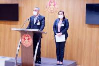 นายสาคร เกี่ยวข้อง รองประธานคณะกรรมาธิการวิสามัญพิจารณาศึกษาการบริหารจัดการปาล์มน้ำมันอย่างเป็นระบบ คนที่หนึ่ง และ น.ส.พิมพ์รพี พันธุ์วิชาติกุล รองประธานคณะ กมธ. คนที่เจ็ด แถลงข่าวเกี่ยวกับ ผลการประชุมของคณะ กมธ.