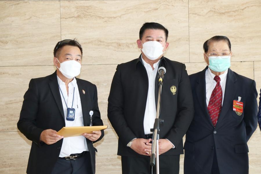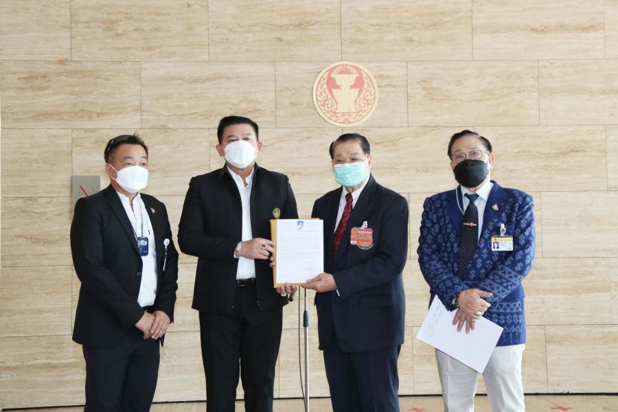 ประธานคณะกรรมาธิการการกฎหมาย การยุติธรรมและสิทธิมนุษยชน และนายชัยยันต์ ผลสุวรรณ์ กมธ. รับยื่นหนังสือจาก นายปฏิภาณ สิทธิไชย ตัวแทนกลุ่มผู้เสียหาย และคณะ
