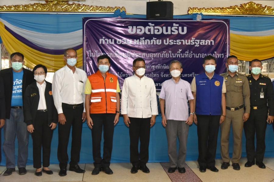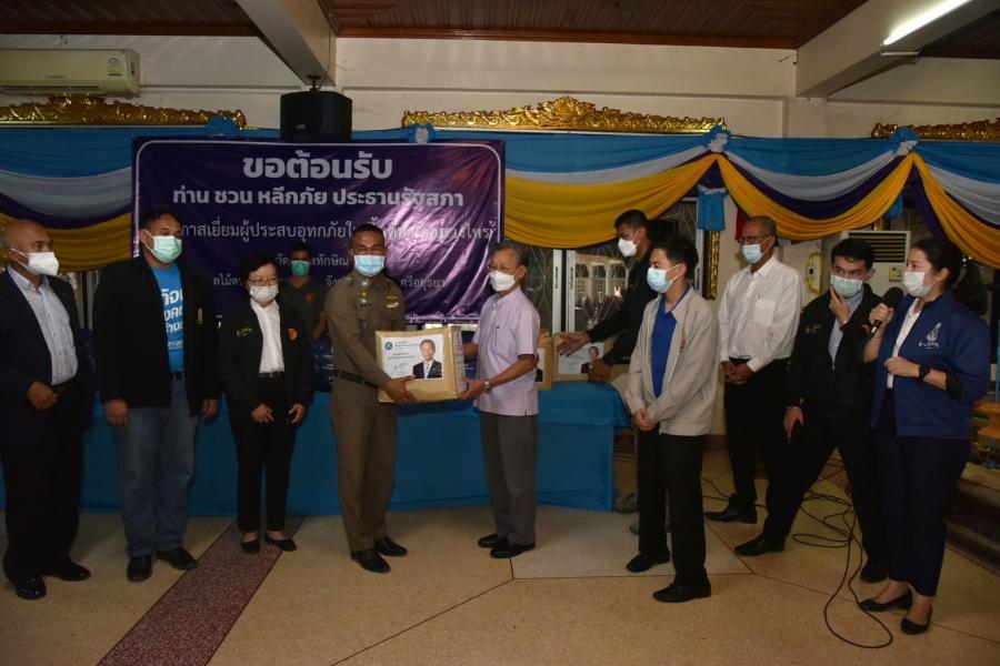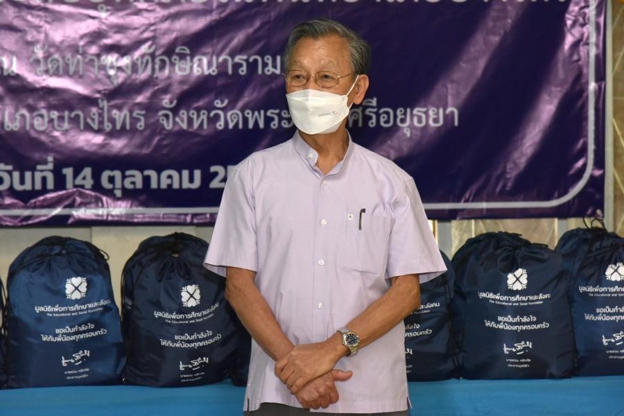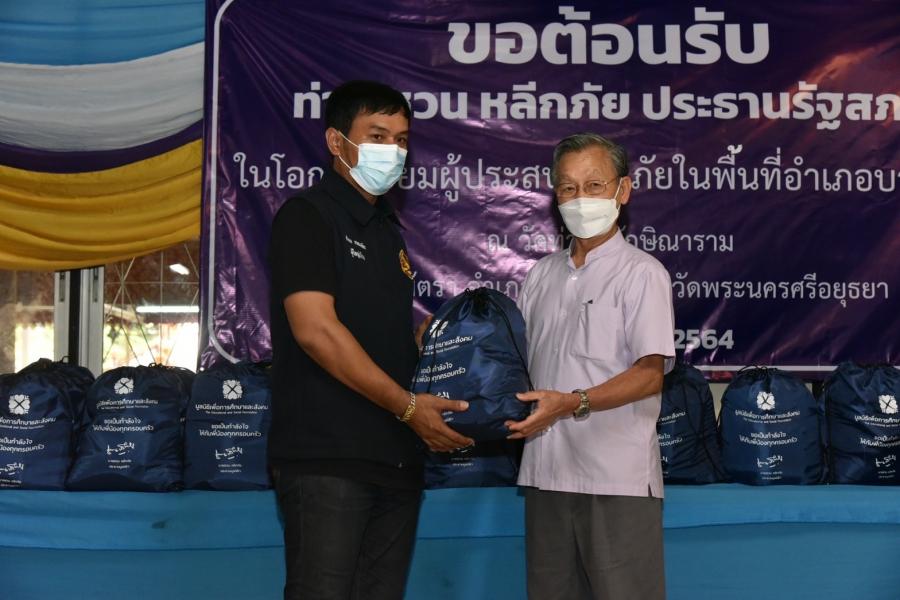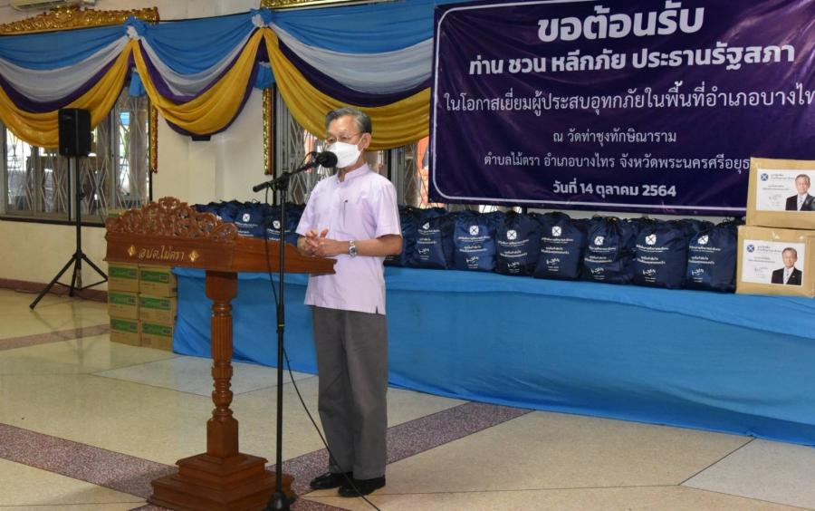 วันพฤหัสบดีที่ 14 ตุลาคม 2564 เวลา 15.00 นาฬิกา ณ วัดท่าซุงทักษิณาราม ต.ไม้ตรา อ.บางไทร  จ.พระนครศรีอยุธยา นายชวน หลีกภัย ประธานรัฐสภาและประธานมูลนิธิเพื่อสังคมและการศึกษา พร้อมด้วย  นายอิสระ เสรีวัฒนวุฒิ สมาชิกสภาผู้แทนราษฎรและเลขาธิการมูลนิธิฯ นายสมบูรณ์ อุทัยเวียนกุล เลขานุการประธานสภาผู้แทนราษฎร น.ส.ศิริภา อินทวิเชียร ผู้ช่วยเลขานุการประธานสภาผู้แทนราษฎรและเหรัญญิกมูลนิธิฯ และ น.ส.ผ่องศรี ธาราภูมิ ผู้เชี่ยวชาญประจำตัวสมาชิกสภาผู้แทนราษฎร ลงพื้นที่พบปะเยี่ยมเยียน ให้กำลังใจ และช่วยเหลือประชาชนผู้ประสบอุทกภัย รวมทั้งรับเรื่องราวร้องทุกข์ตามอำนาจหน้าที่ของฝ่ายนิติบัญญัติ เพื่อแก้ไขปัญหาความเดือดร้อนของพี่น้องประชาชน ในการนี้ นางพัชรี อาระยะกุล ปลัดกระทรวงการพัฒนาสังคมและความมั่นคงของมนุษย์ นายประทีป การมิตรี ปลัดจังหวัดพระนครศรีอยุธยา และนายเฉลิมชัย สระบัว นายอำเภอบางไทร ร่วมให้การต้อนรับ พร้อมกันนี้ ได้มอบถุงยังชีพซึ่งผู้มีจิตศรัทธามอบผ่านมูลนิธิเพื่อสังคมและการศึกษา ให้กับผู้ประสบอุทกภัย จำนวน 300 ราย และมอบชุดกางเกงรองเท้าบูทกันน้ำ ซึ่งนายชาน ลอง อิม ประธานกรรมการบริษัท CSB Shoes และบริษัท จริงใจเสมอ จำกัด ได้มอบให้เพื่อนำไปช่วยเหลือพี่น้องประชาชนที่ประสบความเดือดร้อนจากเหตุการณ์อุทกภัย จำนวน 50 ชุด