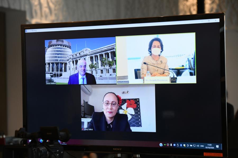 ประธานรัฐสภาและประธานสภาผู้แทนราษฎร ประชุมหารือทวิภาคีผ่านสื่ออิเล็กทรอนิกส์ กับนายเทรเวอร์ มัลลาร์ต ประธานรัฐสภานิวซีแลนด์