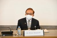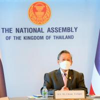 อีกทั้งยังได้กล่าวชื่นชมนิวซีแลนด์ที่มีการบริหารจัดการโรคโควิด-19 ได้เป็นอย่างดีและเป็นที่ยอมรับของทั่วโลก ส่วนในประเทศไทยขณะนี้ยังมีการแพร่ระบาดของโรคที่ยังคงรุนแรงระดับหนึ่ง ซึ่ง รัฐสภาไทยได้มีบทบาทในการแก้ไขปัญหา โดยตนได้ลงพื้นที่ในจังหวัดต่าง ๆ เพื่อมอบหน้ากากอนามัยให้แก่ประชาชนเกือบครบทุกจังหวัดแล้ว ซึ่งการสวมหน้ากากอนามัยนั้นเป็นการป้องกันโรคโควิด-19 เบื้องต้นที่มีประสิทธิภาพ โดยในช่วงที่มีการระบาดรุนแรง รัฐสภาไทยมีช่วงที่หยุดการประชุมไปประมาณ 4 สัปดาห์ แต่ตนเห็นว่าโรคโควิด-19 ยังคงอยู่อีกยาวนาน จึงต้องหาวิธีอยู่ร่วมกับโรคโควิด-19 ให้ได้โดยไม่กระทบกับงาน ดังนั้น รัฐสภาไทยจึงยังคงปฏิบัติหน้าที่ตามปกติจนถึงปิดสมัยประชุม และจะเปิดสมัยประชุมอีกครั้งหนึ่งในวันที่ 1 พ.ย. 64 โดยในช่วงที่ผ่านมามีสมาชิกติดเชื้อประมาณ 13 -14 คน และได้รับการรักษาจนหายแล้วทุกคน สำหรับมาตรการของรัฐสภาไทยในการป้องกันการแพร่ระบาดของโรคนั้น ทางกรมควบคุมโรคได้ให้คำแนะนำและดูแล มีระบบระบายอากาศที่ดี สมาชิกทุกคนต้องสวมหน้ากากอนามัย แต่หากสมาชิกประสงค์จะอภิปรายโดยไม่สวมหน้ากากอนามัยก็จะจัดพื้นที่ซึ่งมีตู้กั้นสำหรับอภิปราย และจะทำความสะอาดทุกครั้งเมื่ออภิปรายจบ ในส่วนของการประชุมคณะ กมธ. ได้มีการประชุมผ่านระบบออนไลน์ แต่สำหรับการประชุมสภายังไม่สามารถดำเนินการในระบบออนไลน์ได้ เนื่องจากขัดต่อรัฐธรรมนูญ ซึ่งขณะนี้กำลังอยู่ระหว่างการดำเนินการศึกษาเพื่อแก้ไขระเบียบข้อบังคับการประชุม เพื่อให้เกิดความคล่องตัวและมีประสิทธิภาพสูงสุด ซึ่งไทยจะต้องศึกษาบทเรียนจากนิวซีแลนด์ในหลายเรื่อง