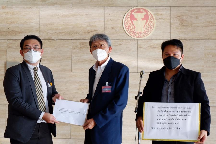 โฆษกคณะ กมธ.การศึกษา รับยื่นหนังสือจาก รศ.อำนาจ เย็นสบาย และคณะ