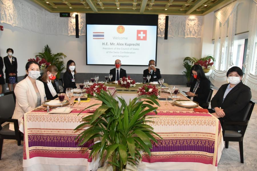 วันศุกร์ที่ 5 พฤศจิกายน 2564 เวลา 13.00 นาฬิกา ณ ห้องรับรองพิเศษ 207 ชั้น 2 โซนกลาง อาคารรัฐสภา  นายชวน หลีกภัย ประธานรัฐสภา และประธานสภาผู้แทนราษฎร เป็นเจ้าภาพเลี้ยงอาหารกลางวันเพื่อเป็นเกียรติแก่ นายอเล็กซ์ คูเพรซท์ (H.E.Mr.Alex Kuprecht) ประธานวุฒิสภาสมาพันธรัฐสวิส และคณะ ในโอกาสเข้าเยี่ยมคารวะ และเดินทางเยือนประเทศไทยอย่างเป็นทางการ ในฐานะแขกของวุฒิสภา ระหว่างวันที่ 3 - 6 พ.ย. 64