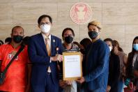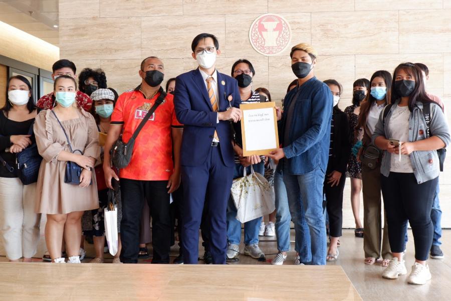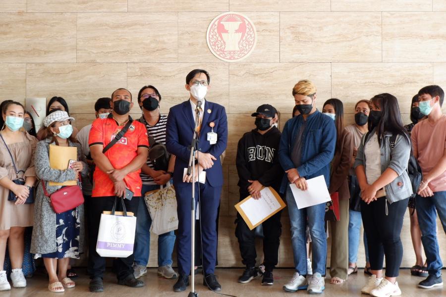นายจิรัฏฐ์ ทองสุวรรณ์ โฆษกคณะ กมธ. การอุตสาหกรรม รับยื่นหนังสือจาก นายสมถะ นราจันทร์ ตัวแทนกลุ่มผู้เสียหาย เพื่อขอความเป็นธรรมจากกรณีถูกเรียกเงินคืนจากโครงการเราชนะและการถูกระงับร้านค้าในแอปพลิเคชันถุงเงิน