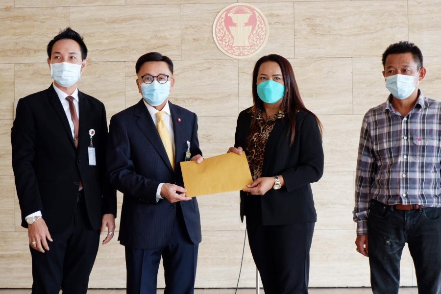 นายเรวัต วิศรุตเวช ส.ส. พรรคเสรีรวมไทย รับยื่นหนังสือจาก นางลำพึง แฮมิลตัน ประธานชมรมผู้ประกอบการจอมเทียน พัทยา