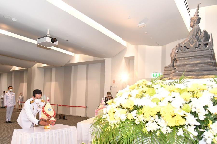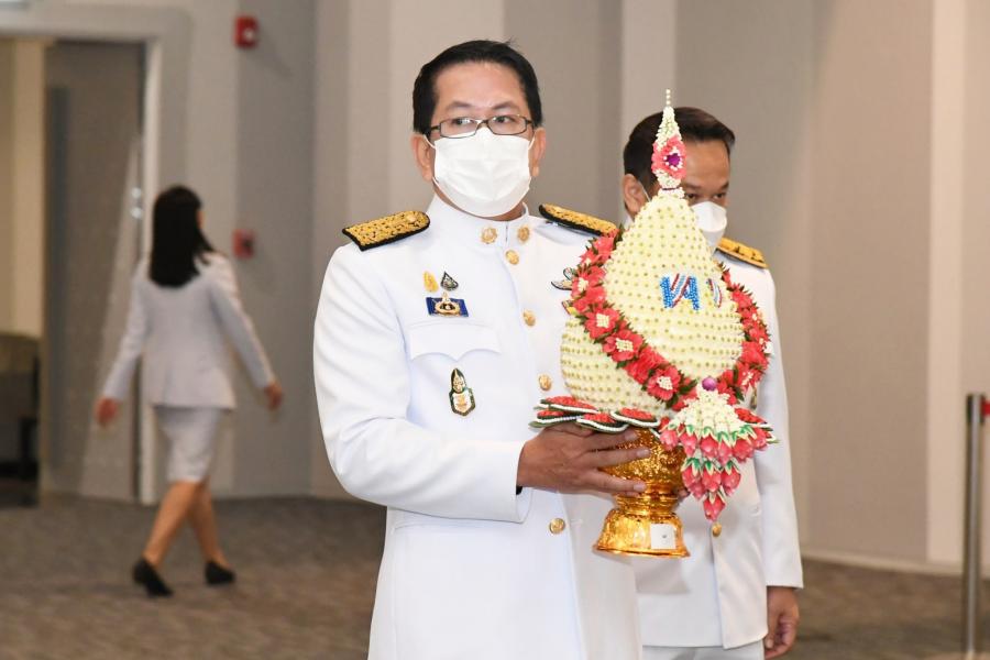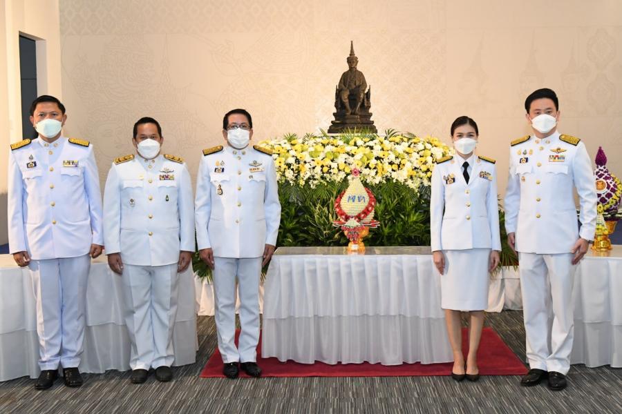 สมาชิกผู้แทนราษฎรพรรคเพื่อไทย วางพานประดับพุ่มดอกไม้ถวายบังคมพระรูปต้นแบบพระบาทสมเด็จพระปกเกล้าเจ้าอยู่หัว ในนาม “พรรคเพื่อไทย”