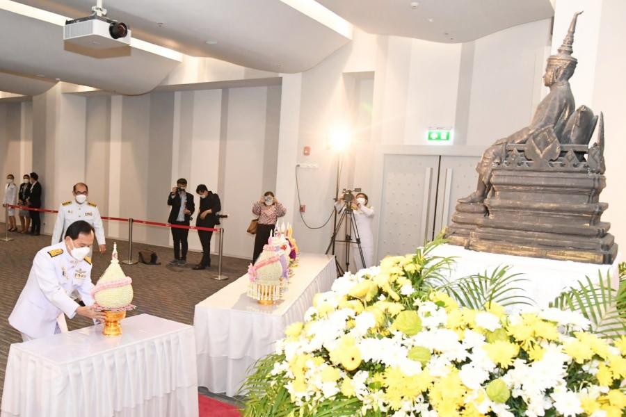 สมาชิกสภาผู้แทนราษฎรพรรคชาติพัฒนา วางพานประดับพุ่มดอกไม้ถวายบังคมพระรูปต้นแบบพระบาทสมเด็จพระปกเกล้าเจ้าอยู่หัว ในนาม “พรรคชาติพัฒนา”