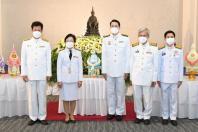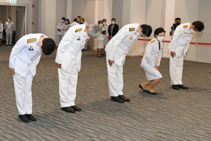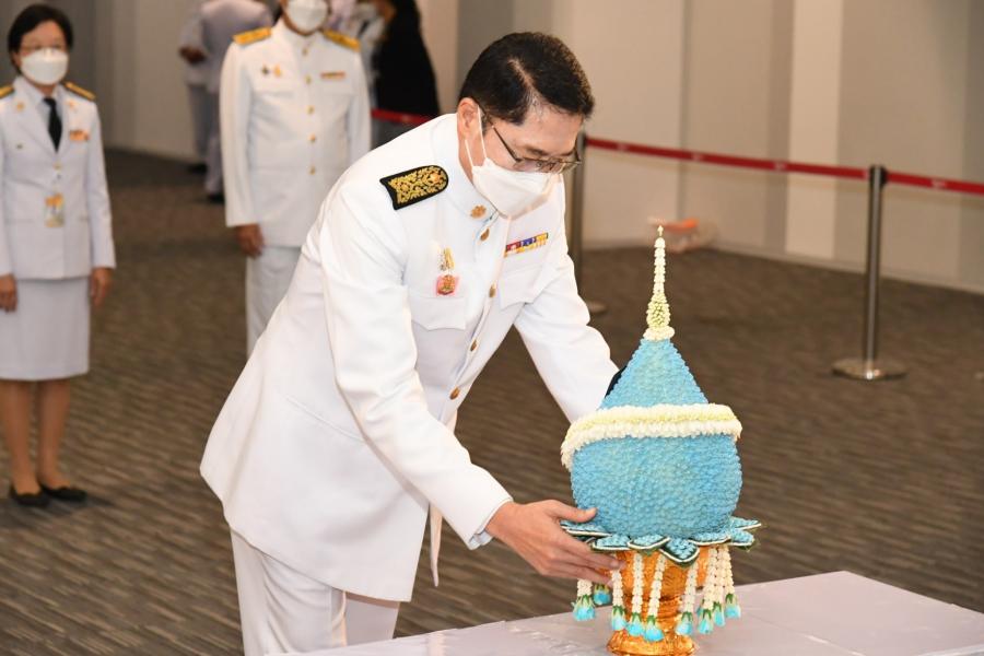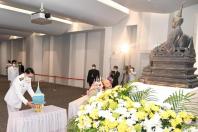 สมาชิกสภาผู้แทนราษฎรพรรคประชาธิปัตย์ วางพานประดับพุ่มดอกไม้ถวายบังคมพระรูปต้นแบบพระบาทสมเด็จพระปกเกล้าเจ้าอยู่หัว ในนาม “พรรคประชาธิปัตย์”