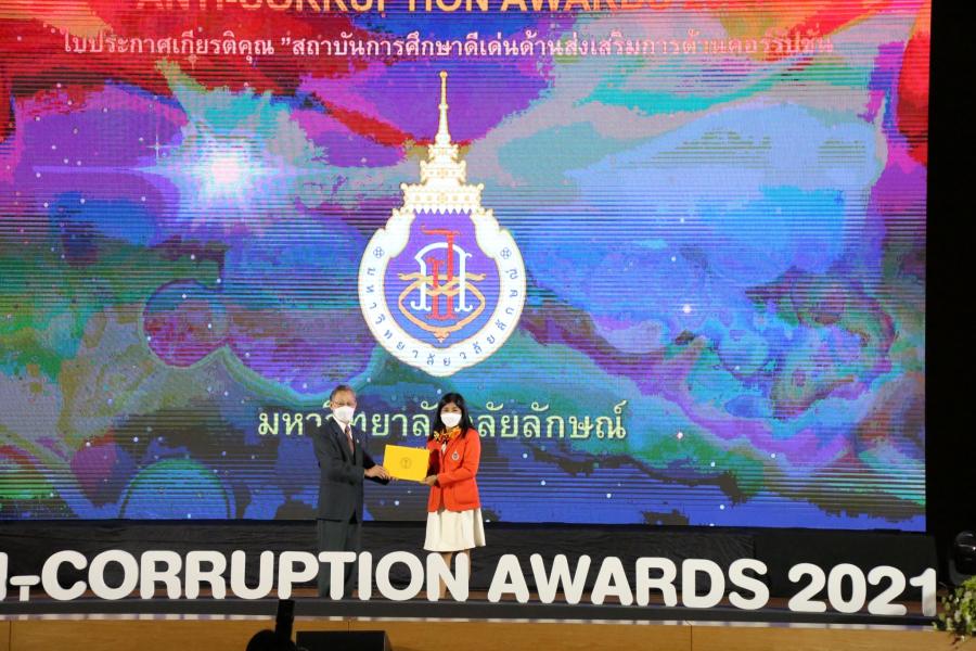 จากนั้น ประธานรัฐสภา มอบโล่รางวัล "Anti-Corruption Awards 2021" ส่งเสริมการต้านคอร์รัปชัน ประจำปี 2564 ทั้งนี้ การมอบรางวัล ANTI-CORRUPTION AWARDS 2021 จัดโดยสมาคมผู้สื่อข่าวต้านคอร์รัปชัน (ประเทศไทย) โดยมีวัตถุประสงค์ เพื่อส่งเสริมและยกย่อง สถาบัน องค์กร หน่วยงาน ที่มีความโปร่งใส่ ปฏิบัติหน้าที่ตามหลักธรรมาภิบาลและมีนโยบายในการต่อต้านการทุจริตคอร์รัปชันส่งเสริมและเชิดชูสื่อมวลชนที่นำเสนอข้อมูลข่าวสารที่เป็นประโยชน์ในการต่อต้านการทุจริตคอร์รัปชันให้สังคมได้รับทราบ