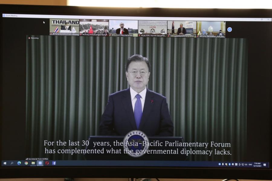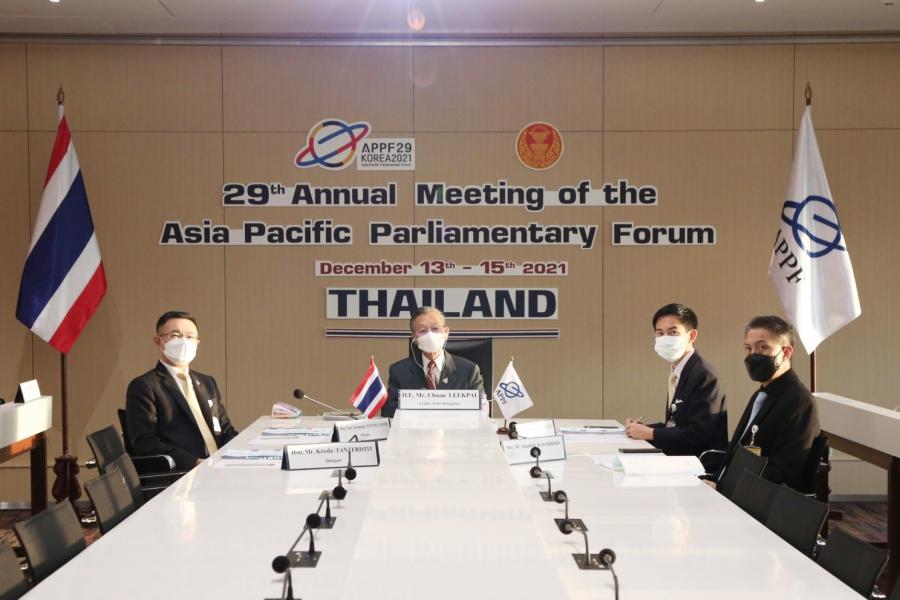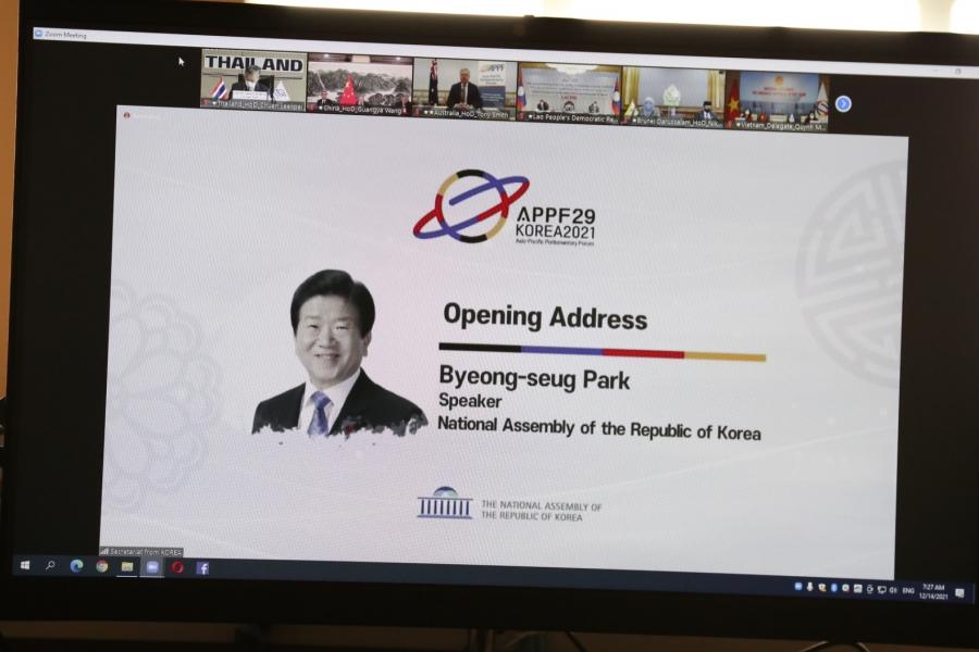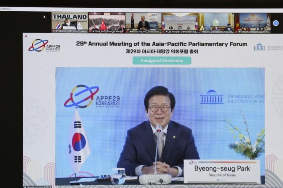 การประชุมประจำปีรัฐสภาภาคพื้นเอเชียและแปซิฟิก (APPF) ครั้งที่ 29 (วันที่สองช่วงพิธีเปิด)ในวันที่สอง (วันอังคารที่ 14 ธันวาคม 2564) นายชวน หลีกภัย ประธานรัฐสภาและประธานสภาผู้แทนราษฎร ได้นำคณะผู้แทนรัฐสภาไทย จำนวนรวม 15 คนเข้าร่วมการประชุมประจำปีรัฐสภาภาคพื้นเอเชียและแปซิฟิก (APPF) ครั้งที่ 29 ซึ่งจัดขึ้นระหว่างวันที่ 13-15 ธันวาคม 2564 ในรูปแบบการประชุมผ่านสื่ออิเล็กทรอนิกส์ โดยมีสาธารณรัฐเกาหลีเป็นเจ้าภาพจัดการประชุม ภายใต้หัวข้อการประชุมหลัก คือ บทบาทของสมาชิกรัฐสภาในการเสริมสร้างความยืดหยุ่นในยุคหลังโรคติดเชื้อไวรัสโคโรนา 2019 The role of parliamentarians in strengthening resilience in the post-Covid-19 era ซึ่งกำหนดการประชุมวันที่สอง เริ่มตั้งแต่เวลา 07.0016.00 นาฬิกา ซึ่งช่วงเช้าเป็นพิธีเปิดการประชุม การประชุมเต็มคณะ วาระที่ 1 ด้านการเมืองและความมั่นคง โดยจะประชุมพร้อมกันกับการประชุมคณะกรรมาธิการยกร่างข้อมติและแถลงการณ์ร่วม และช่วงบ่ายเป็นการประชุมเต็มคณะ วาระที่ 2 ด้านเศรษฐกิจและการค้า ในช่วงเช้า เวลา 07.0008.00 นาฬิกา เป็นพิธีเปิดการประชุม โดยเริ่มต้นจากการนำเสนอวิดีทัศน์แนะนำการประชุมของประเทศเจ้าภาพ และการกล่าวรายงานการจัดประชุม APPF ครั้งที่ 29 โดยนาย Lee Choon-suak เลขาธิการรัฐสภาสาธารณรัฐเกาหลี หลังจากนั้น เป็นพิธีการกล่าวสุนทรพจน์และถ้อยแถลงเปิดการประชุม โดยมีลำดับ ดังนี้ 1. นาย Moon Jae-in ประธานาธิบดีสาธารณรัฐเกาหลี ได้กล่าวต้อนรับผู้แทนรัฐสภาจากประเทศสมาชิก APPF ที่เข้าร่วมการประชุม พร้อมทั้งเน้นย้ำถึงความสำคัญของการทูตรัฐสภา และการประชุม APPF ที่จะเป็นส่วนสำคัญในการสร้างความเป็นปึกแผ่นและความร่วมมือระหว่างกัน ซึ่งรวมถึงการประชุม APPFGH ซึ่งเป็นการประชุมด้านสุขภาพของภูมิภาคเอเชียและแปซิฟิกด้วย 2. นาย Ban Ki-moon ประธานสถาบันการเติบโตสีเขียวระดับโลก (Global Green Growth Institute: GGGI) อดีตเลขาธิการสหประชาชาติ ได้กล่าวถึงความสำคัญของการประชุม APPF ที่จะช่วยขยายผลการหารือในอนาคต ผลกระทบของการระบาดของโรคโควิด-19 โดยเฉพาะอย่างยิ่งความไม่เท่าเทียมกันในด้านต่าง ๆ ความสำคัญของเป้าหมายการพัฒนาที่ยั่งยืนที่เป็นสิ่งจำเป็นในการเสริมสร้างความยืดหยุ่นและการพัฒนาที่ยั่งยืน และบทบาทของสมาชิกรัฐสภาในการบรรลุสันติภาพและความมั่นคงตามวิสัยทัศน์ขององค์การสหประชาชาติ 3. นาย Tony Smith ประธาน APPF ได้กล่าวต้อนรับผู้แทนรัฐสภา ที่เข้าร่วมการประชุมทุกท่าน และชื่นชมความพยายามในการเป็นเจ้าภาพจัดการประชุม APPF ครั้งที่ 29 ของสาธารณรัฐเกาหลีในครั้งนี้ และได้กล่าวถึงการลาออกจากตำแหน่งประธานสภาผู้แทนราษฎรเครือรัฐออสเตรเลีย