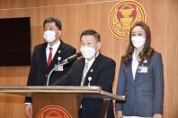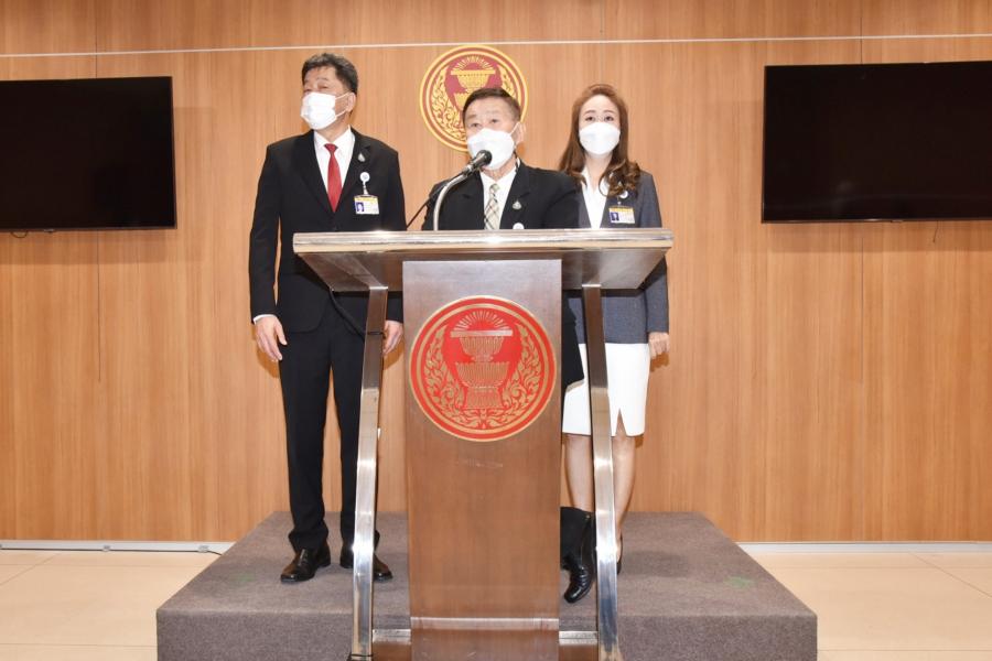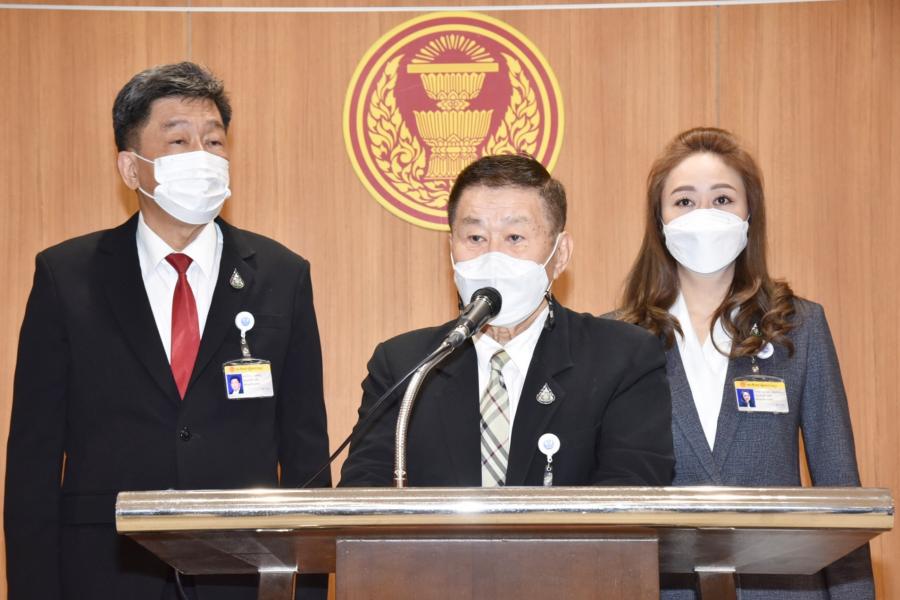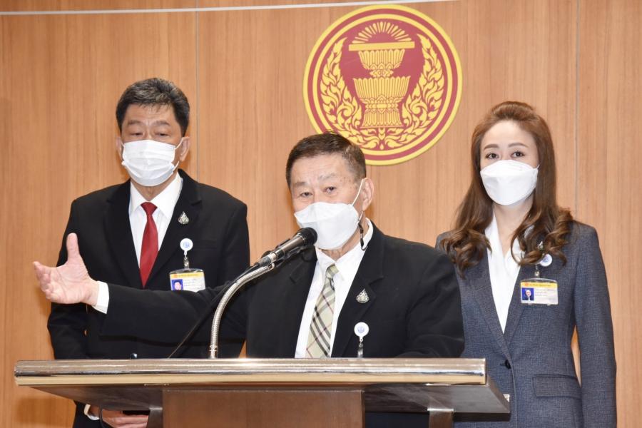 พล.ต.อ.เสรีพิศุทธ์ เตมียเวส หัวหน้าพรรคเสรีรวมไทย พร้อมด้วยนายวิรัตน์ วรศสิริน และ น.ส.นภาพร เพ็ชร์จินดา ส.ส. พรรคเสรีรวมไทย แถลงข่าว