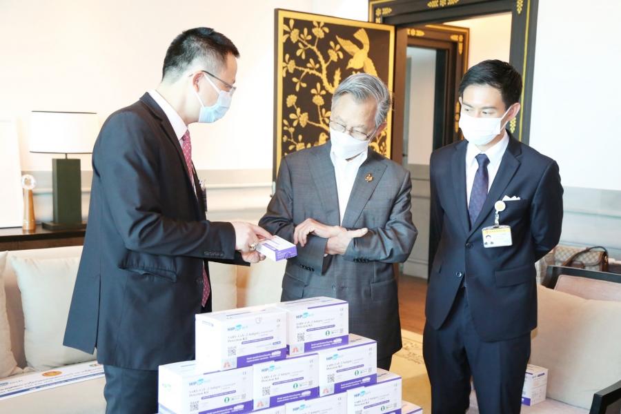 ประธานรัฐสภา รับมอบชุดตรวจโควิดชนิดตรวจผ่านทางน้ำลาย (ATK Saliva) จาก ประธานบริษัท เอช ไอ พี โกบอล จำกัด