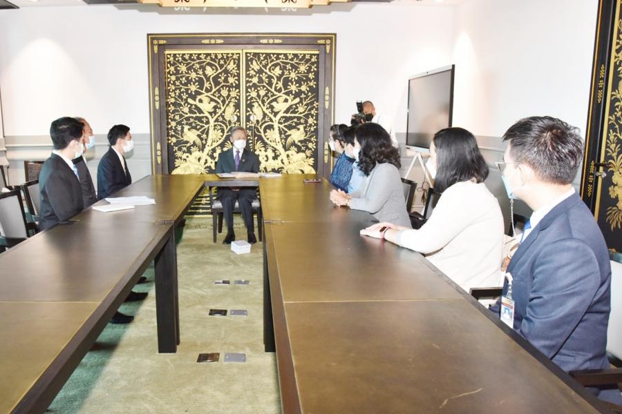 วันศุกร์ที่ 21 มกราคม 2565 เวลา 08.30 นาฬิกา ณ ห้องรับรองประธานรัฐสภา ชั้น 10 อาคารรัฐสภา นายชวน หลีกภัย ประธานรัฐสภาและประธานสภาผู้แทนราษฎร ให้การรับรอง น.ส.คนึงนิจ ศรีบัวเอี่ยม หัวหน้าทีมกฎหมายผู้ยกร่าง พ.ร.บ.กำกับดูแลการจัดการอากาศสะอาดเพื่อสุขภาพแบบบูรณาการ พ.ศ. .... และคณะ ในโอกาสเข้าเยี่ยมคารวะ เพื่อเสนอร่าง พ.ร.บ.ดังกล่าวต่อประธานสภาผู้แทนราษฎร โดยมี นายอิสระ เสรีวัฒนวุฒิ สมาชิกสภาผู้แทนราษฎร และนายสมบูรณ์ อุทัยเวียนกุล เลขานุการประธานสภาผู้แทนราษฎร ร่วมให้การรับรอง