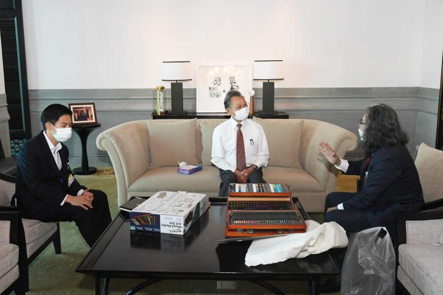 วันจันทร์ที่ 24 มกราคม 2565 เวลา 10.10 นาฬิกา ณ ห้องรับรองประธานรัฐสภา ชั้น 10 อาคารรัฐสภา นายชวน หลีกภัย ประธานรัฐสภาและประธานสภาผู้แทนราษฎร ให้การต้อนรับ นายชูเกียรติ ลิขิตปัญญารัตน์ ในโอกาสเข้าเยี่ยมคารวะเพื่อมอบเครื่องมือศิลปะแด่ประธานรัฐสภา โดยมี นายอิสระ เสรีวัฒนวุฒิ สมาชิกสภาผู้แทนราษฎร และน.ส.ศิริภา อินทวิเชียร ผู้ช่วยเลขานุการประธานสภาผู้แทนราษฎร ร่วมให้การต้อนรับ