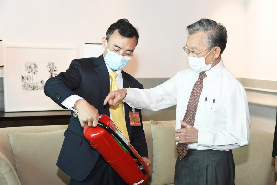 ประธานรัฐสภา รับมอบถังดับเพลิง จำนวน 400 ถัง จาก ประธานกรรมการบริษัท CSB Shoes บริษัท จริงใจเสมอ จำกัด และบริษัท เซียนหัวไท้ จำกัด เพื่อนำไปช่วยเหลือพี่น้องประชาชนที่ประสบความเดือดร้อนจากเหตุอัคคีภัย