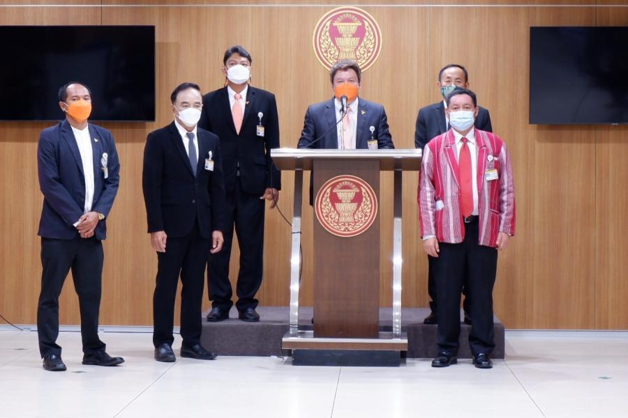 นายสุรเชษฐ์ ประวีณวงศ์วุฒิ ส.ส.พรรคก้าวไกล พร้อมคณะ แถลงข่าว