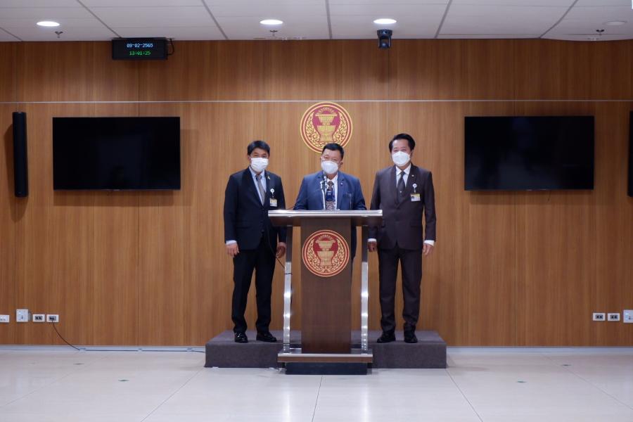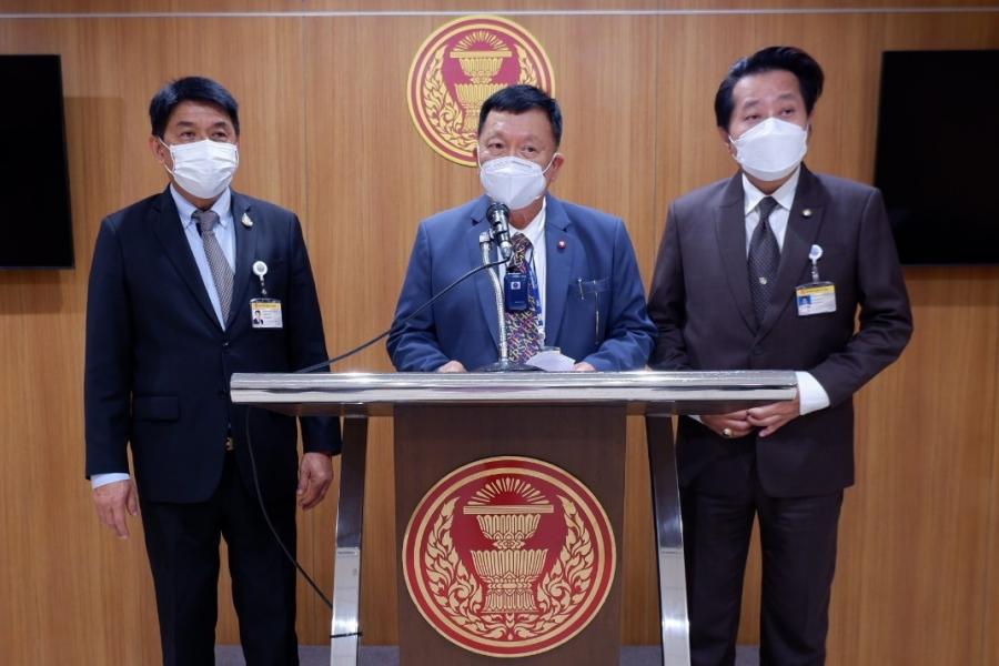 นายวิรัช พันธุมะผล นายสฤษฏ์พงษ์ เกี่ยวข้อง และนายโชติพิพัฒน์ เตชะโสภณมณี สมาชิกสภาผู้แทนราษฎร พรรคภูมิใจไทย แถลงข่าวกรณีร่างพระราชบัญญัติแก้ไขเพิ่มเติมประมวลกฎหมายวิธีพิจารณาความอาญา (ฉบับที่ ..) พ.ศ. ....