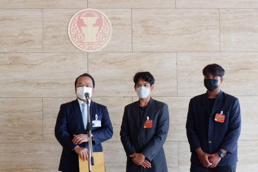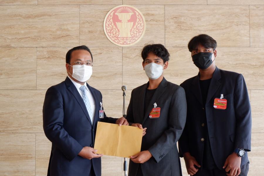 นายราเมศ รัตนะเชวง เลขานุการประธานรัฐสภา รับยื่นหนังสือ จากนายจักรกฤษณ์ เต็มเปี่ยม เลขานุการชมรม STRONG จิตพอเพียง กรุงเทพใต้ ประธานสภาเด็กและเยาวชนกลุ่มเขตกรุงเทพใต้ และคณะ เรื่องขอความอนุเคราะห์แก้ไขปัญหาปริมาณขยะล้นชุมชน
