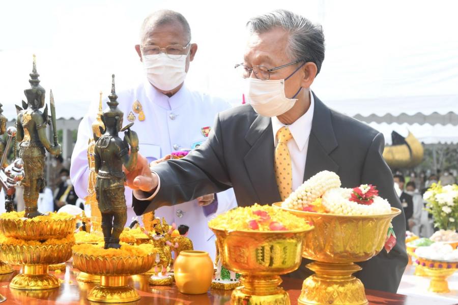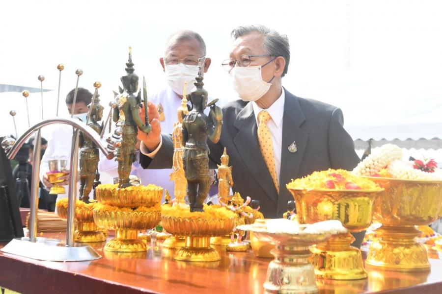ประธานรัฐสภาและประธานสภาผู้แทนราษฎร เป็นประธานในพิธีตั้งศาลพระสยามเทวาธิราช พระเสื้อเมือง พระทรงเมือง พระภูมิชัยมงคล และศาลตายายประจำรัฐสภา (2)