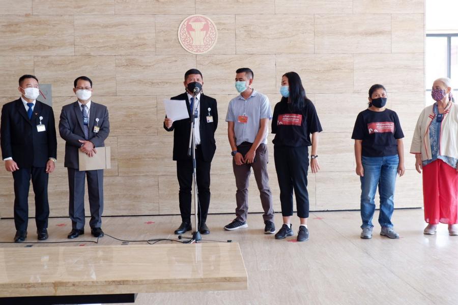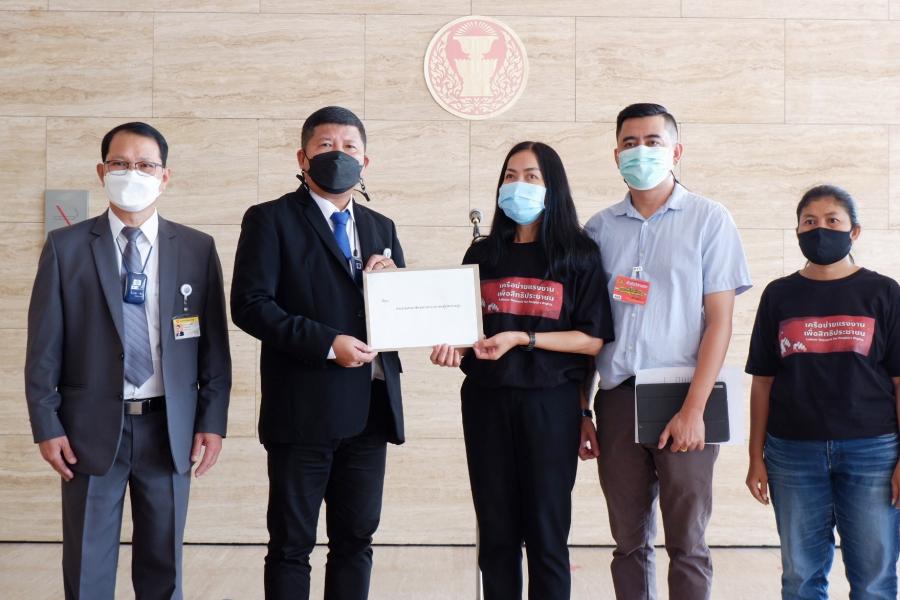 วันพุธที่ 23 กุมภาพันธ์ 2565 เวลา 10.15 นาฬิกาณ จุดรับยื่นหนังสือ ชั้น 1 (โซนกลาง) อาคารรัฐสภา นายสุเทพ อู่อ้น ประธานคณะ กมธ.การแรงงาน รับยื่นหนังสือจากน.ส.ธนพร วิจันทร์ ผู้ประสานงานเครือข่ายแรงงานเพื่อสิทธิประชาชน และคณะ เรื่อง ขอให้กำหนดวันเลือกตั้งผู้แทนฝ่ายนายจ้างและผู้แทนฝ่ายผู้ประกันตนเป็นกรรมการประกันสังคมนับตั้งแต่การประกาศ พ.ร.บ.ประกันสังคม (ฉบับที่ 4) พ.ศ. 2558 เมื่อวันที่ 20 ต.ค. 58