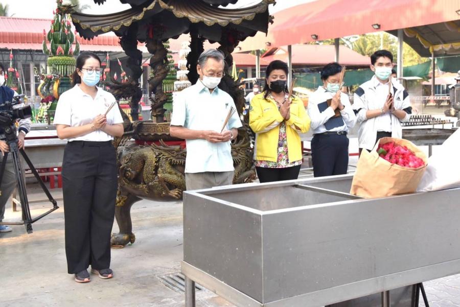 วันอาทิตย์ที่ 27 กุมภาพันธ์ 2565 เวลา 07.20 นาฬิกา ณ วัดจุฬามณี ต.บางช้าง อ.อัมพวา จ.สมุทรสงคราม นายชวน หลีกภัย ประธานรัฐสภาและประธานสภาผู้แทนราษฎร และคณะ ประกอบด้วย น.ส.ผ่องศรี ธาราภูมิ ผู้เชี่ยวชาญประจำตัวสมาชิกสภาผู้แทนราษฎร น.ส.ศิริภา อินทวิเชียร ผู้ช่วยเลขานุการประธานสภาผู้แทนราษฎร และนายณัฐกานต์ ชูชนะ เลขานุการคณะทำงานทางการเมืองของประธานสภาผู้แทนราษฎร เข้ากราบนมัสการและถวายเครื่องปัจจัยไทยธรรม แด่พระครูโสภิตวิริยาภรณ์ (อิฏฐ์ ภทฺทจาโร) เจ้าอาวาสวัดจุฬามณี และสักการะท้าวเวสสุวรรณ โดยมี น.ส.รังสิมา รอดรัศมี สมาชิกสภาผู้แทนราษฎร จ.สมุทรสงคราม ให้การต้อนรับ