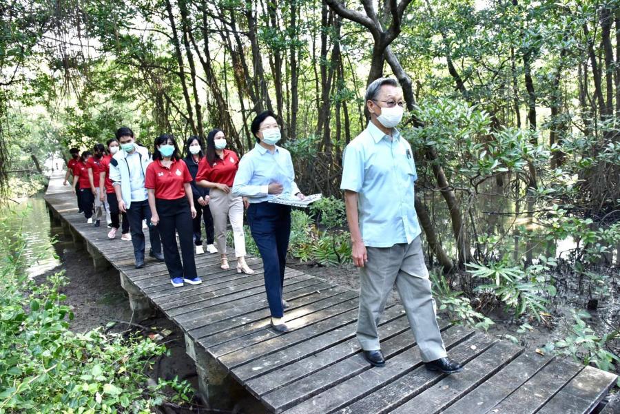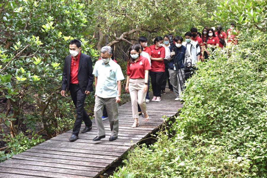 ประธานรัฐสภา ลงพื้นที่ศึกษาดูงานโครงการปลูกป่าโกงกางเฉลิมพระเกียรติฯ และบันทึกภาพต้นไม้ ณ โรงเรียนบางตะบูนวิทยาจังหวัดเพชรบุรี