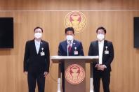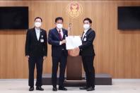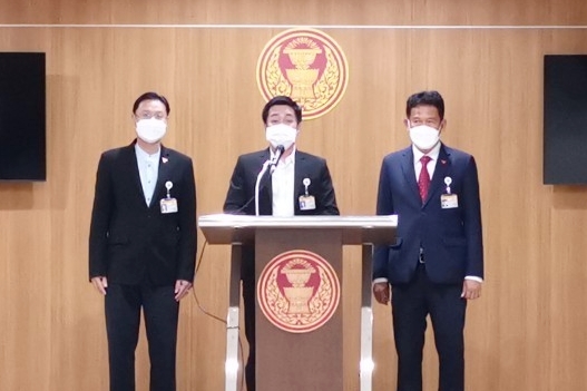 นายธีรัจชัย พันธุมาศ โฆษกคณะ กมธ.การป้องกันและปราบปรามการทุจริตประพฤติมิชอบ รับยื่นหนังสือจากนายปดิพัทธ์ สันติภาดา และนายณัฐวุฒิ บัวประทุม ส.ส.พรรคก้าวไกล