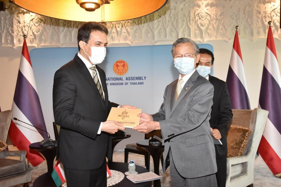 ประธานรัฐสภา ให้การรับรอง เอกอัครราชทูตรัฐสุลต่านโอมานประจำประเทศไทย ในโอกาสเข้าเยี่ยมคารวะ เพื่อแนะนำตัว และกระชับความสัมพันธ์ระหว่างรัฐสภาไทยกับรัฐสุลต่านโอมาน